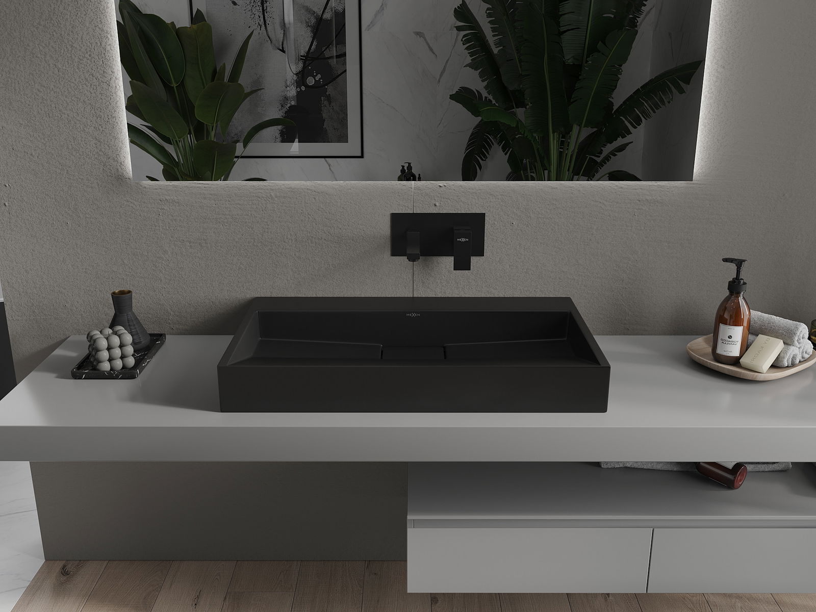 Mexen Ava плот за стояща мивка от конгломерат B/O 80 x 46 cm, черна - 23018070