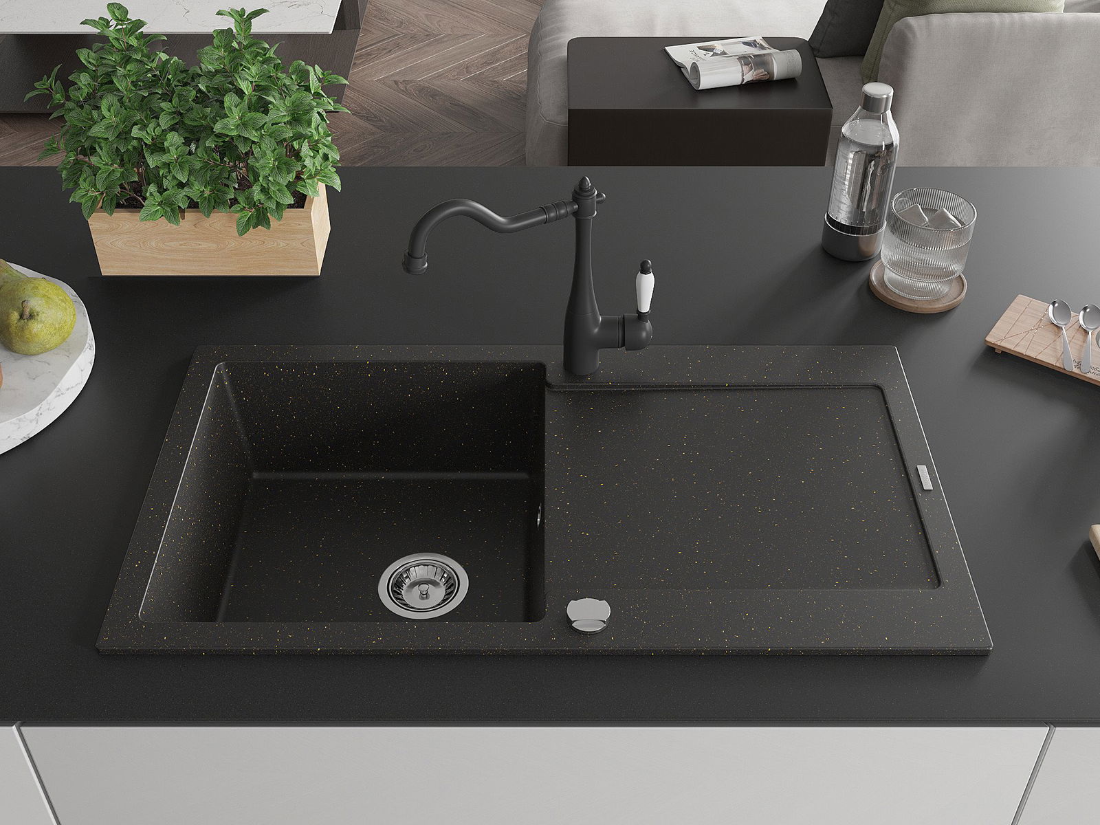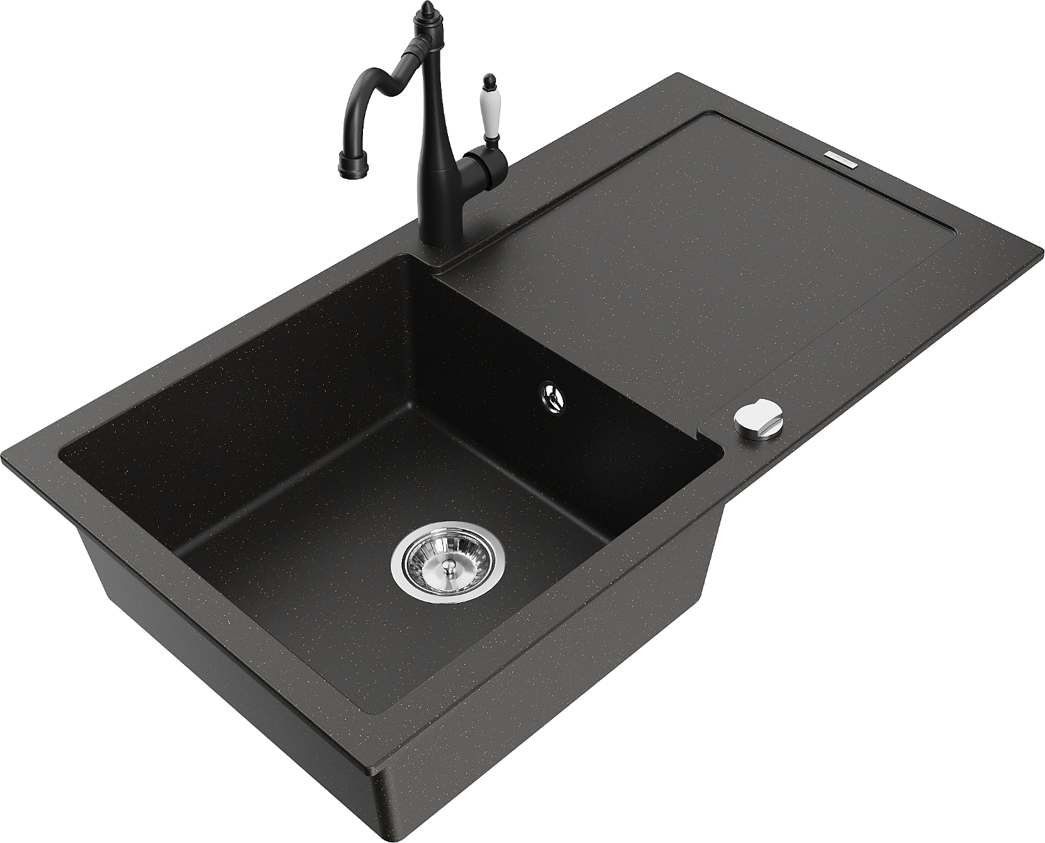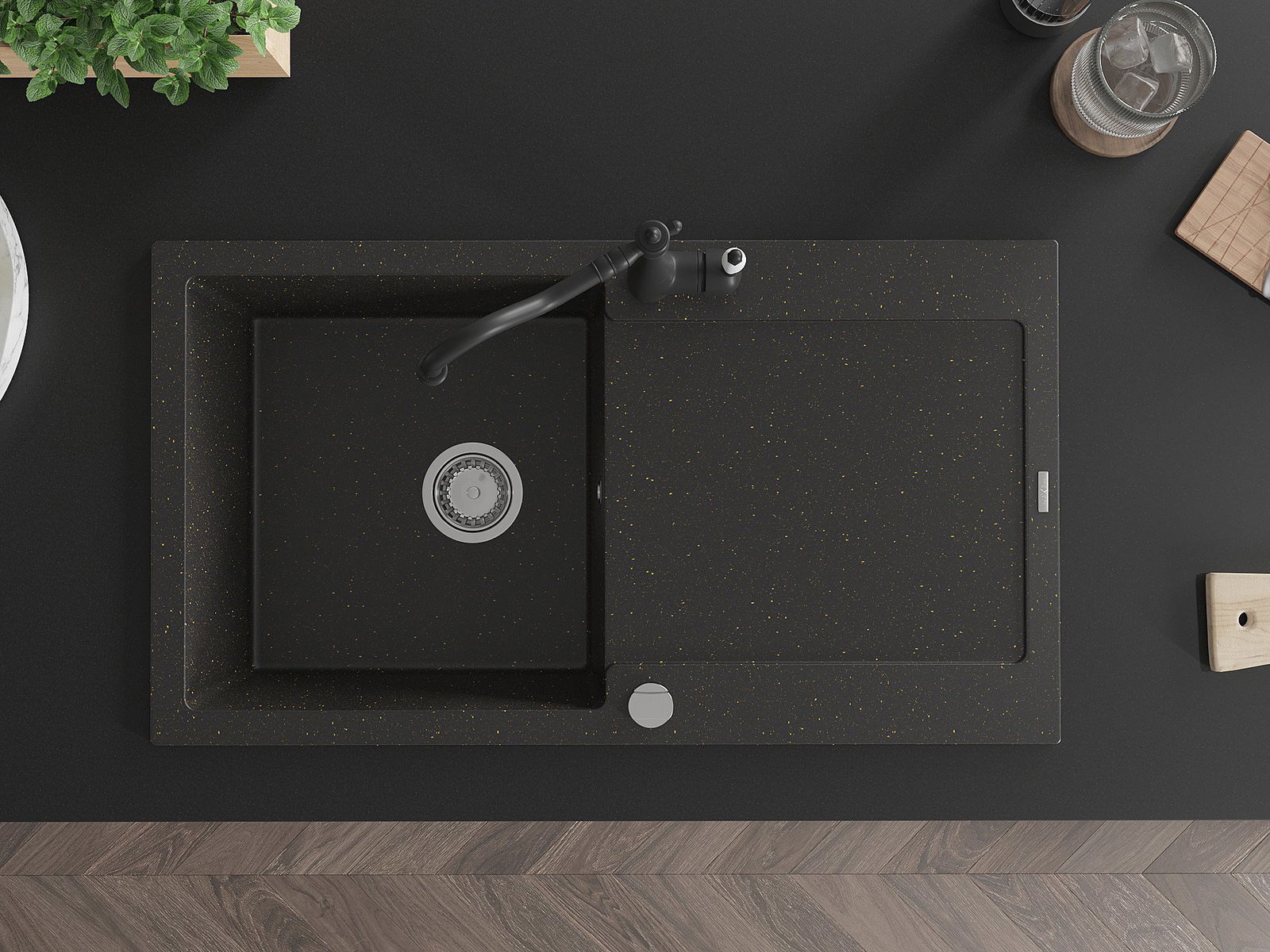 Mexen Leo гранитна мивка с 1 отделение с дренаж и кухненски смесител Карла,