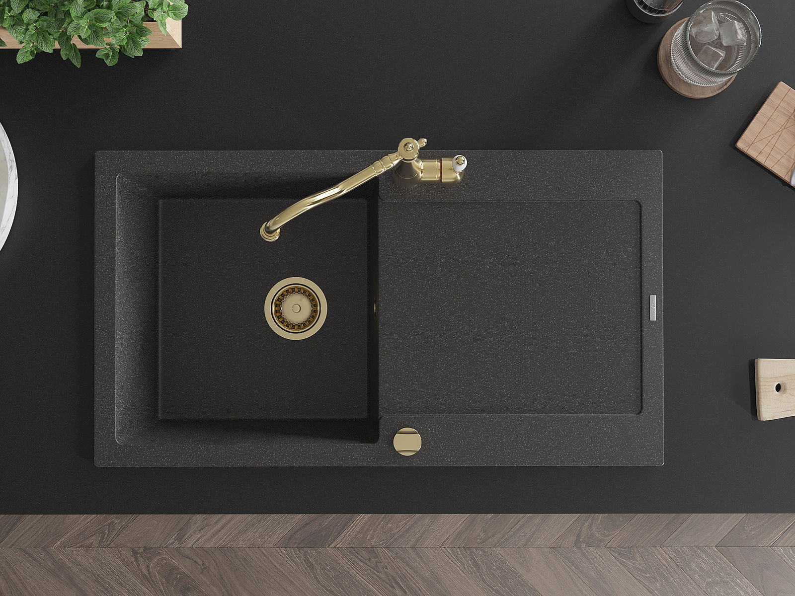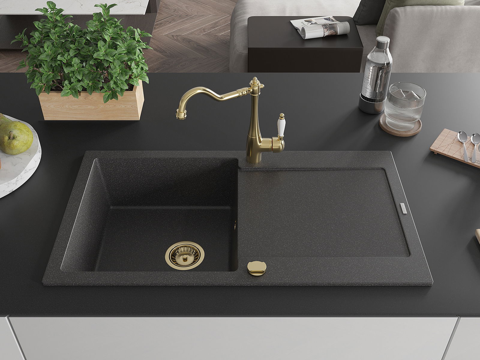 Мивката е направена от висококачествен гранит. Това е елегантно и най -вече практично допълнение към всяка кухня, независимо от нейния стил. Висококачествената и гранитна издръжливост осигуряват много години употреба.