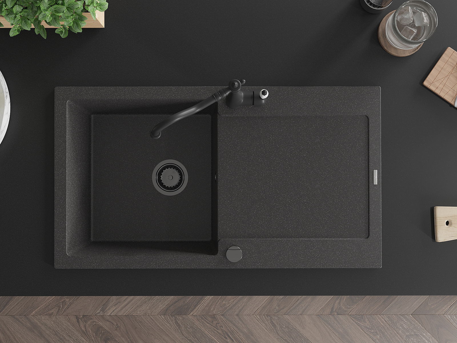 Мивката е направена от висококачествен гранит. Това е елегантно и най -вече практично допълнение към всяка кухня, независимо от нейния стил. Висококачествената и гранитна издръжливост осигуряват много години употреба.
