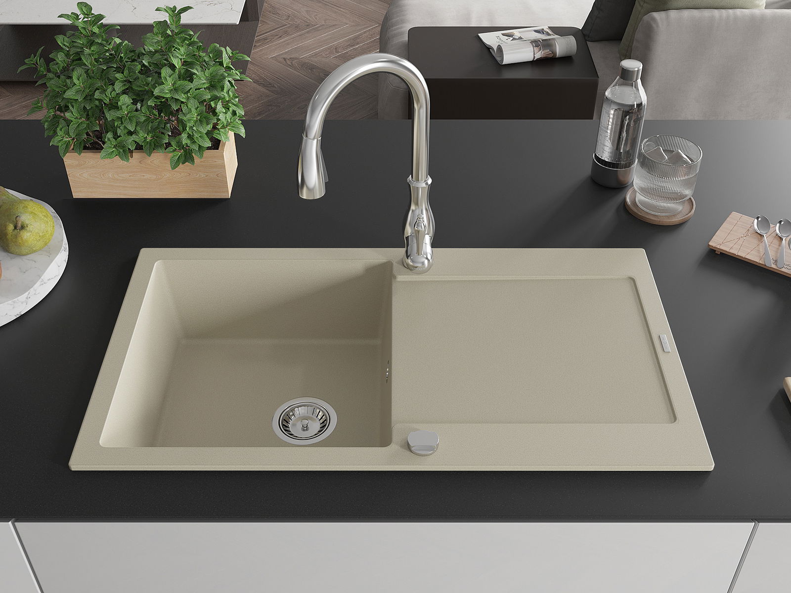 Повърхността на мивката е устойчива на петна и обезцветяване, благодарение на които е лесно да се почиства и запазва цвета си за дълго време. Естетически и практически допълващи всяка кухня.