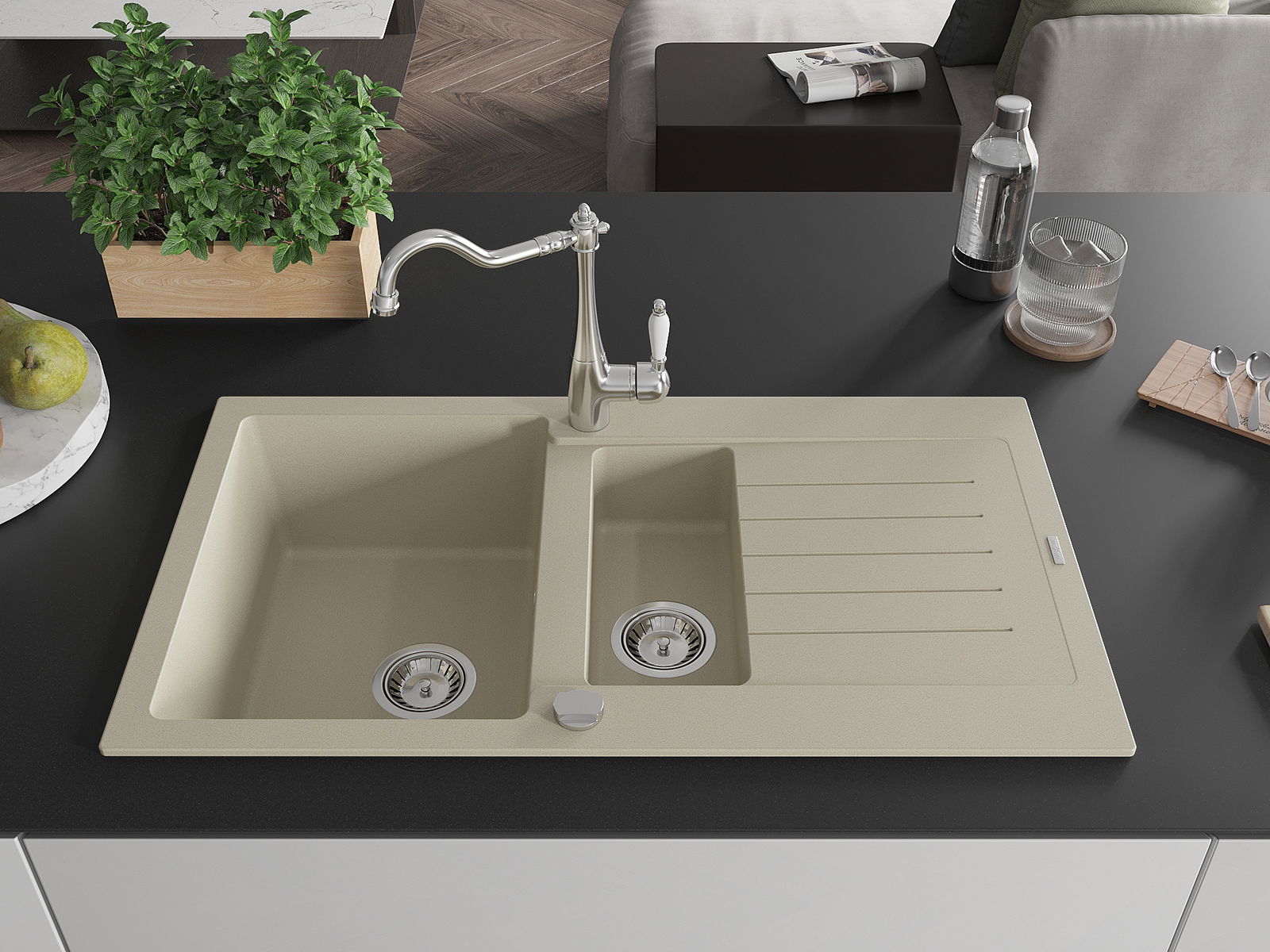 Повърхността на мивката е устойчива на петна и обезцветяване, благодарение на които е лесно да се почиства и запазва цвета си за дълго време. Естетически и практически допълващи всяка кухня.