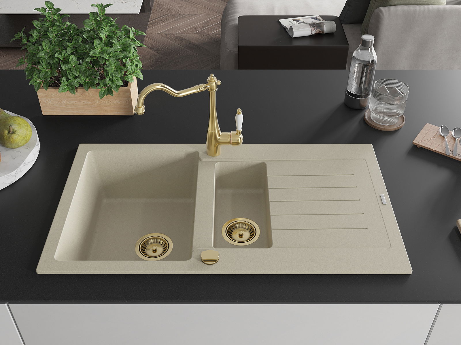 Мивката е направена от висококачествен гранит. Това е елегантно и най -вече практично допълнение към всяка кухня, независимо от нейния стил. Висококачествената и гранитна издръжливост осигуряват много години употреба.