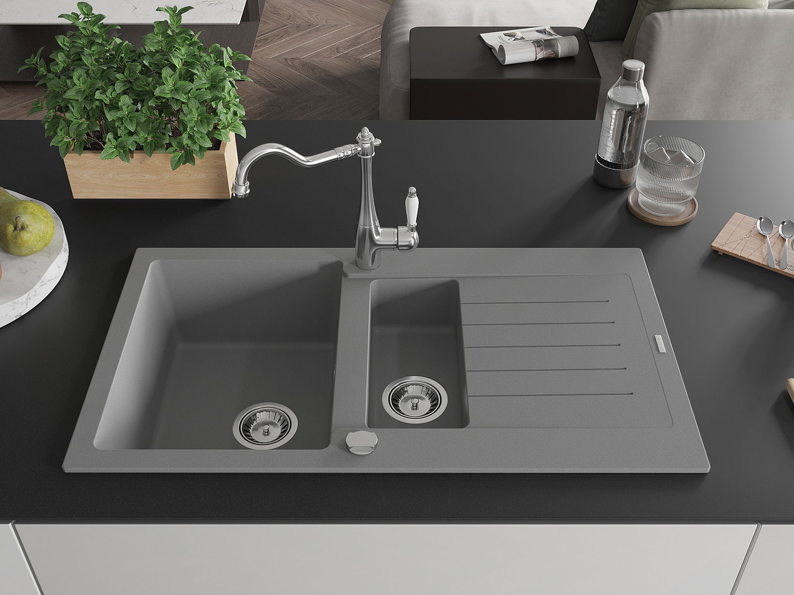 Мивката е направена от висококачествен гранит. Това е елегантно и най -вече практично допълнение към всяка кухня, независимо от нейния стил. Висококачествената и гранитна издръжливост осигуряват много години употреба.