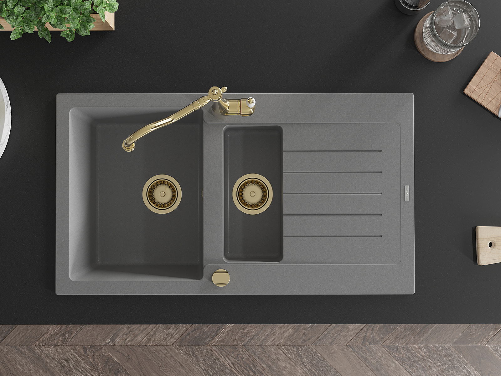 Mexen Matias гранитна мивка с 1,5 камери с отцедник и кухненски смесител Carla, сив - 6502-71-670700-50