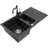 Mexen Matias гранитна мивка 1,5-компартментова с отцедник и кухненски смесител Carla, сив - 6502-71-670700-71