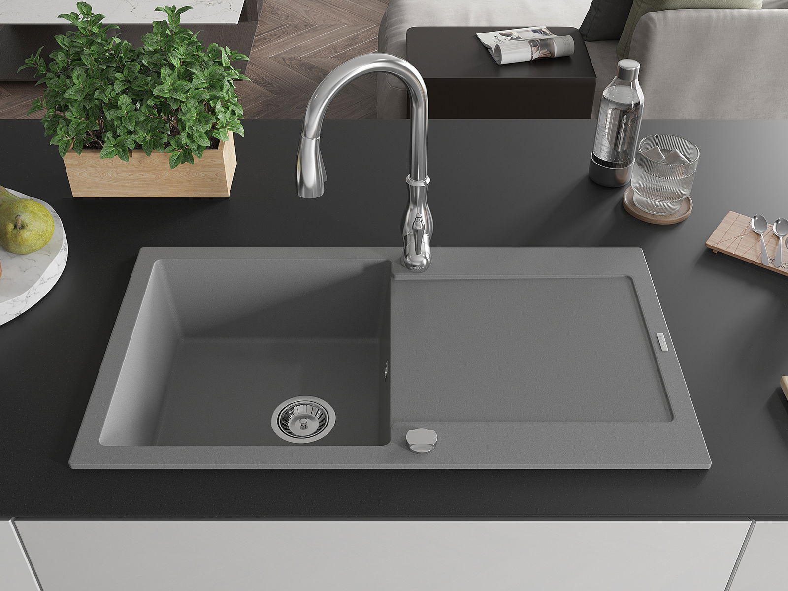 Мивката е направена от висококачествен гранит. Това е елегантно и най -вече практично допълнение към всяка кухня, независимо от нейния стил. Висококачествената и гранитна издръжливост осигуряват много години употреба.