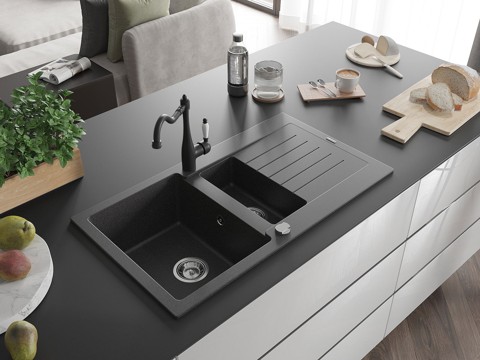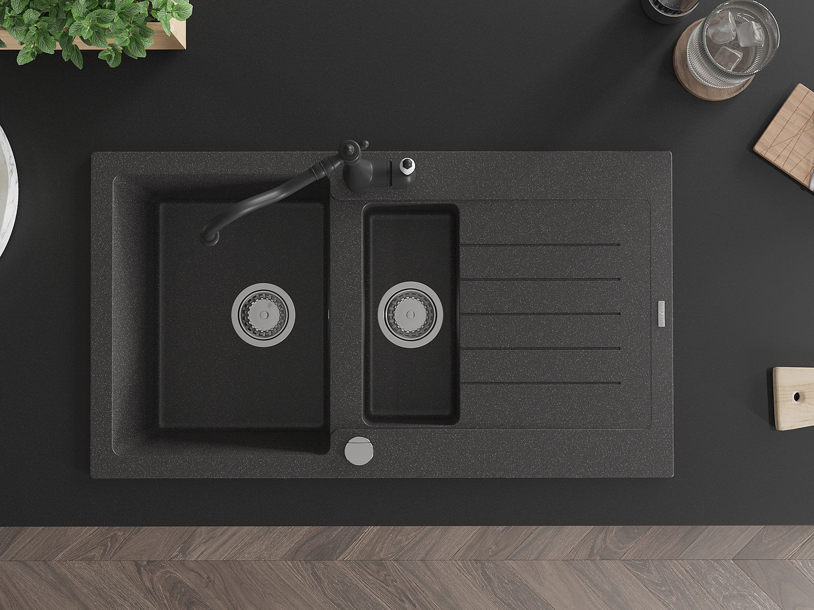 Мивката е направена от висококачествен гранит. Това е елегантно и най -вече практично допълнение към всяка кухня, независимо от нейния стил. Висококачествената и гранитна издръжливост осигуряват много години употреба.