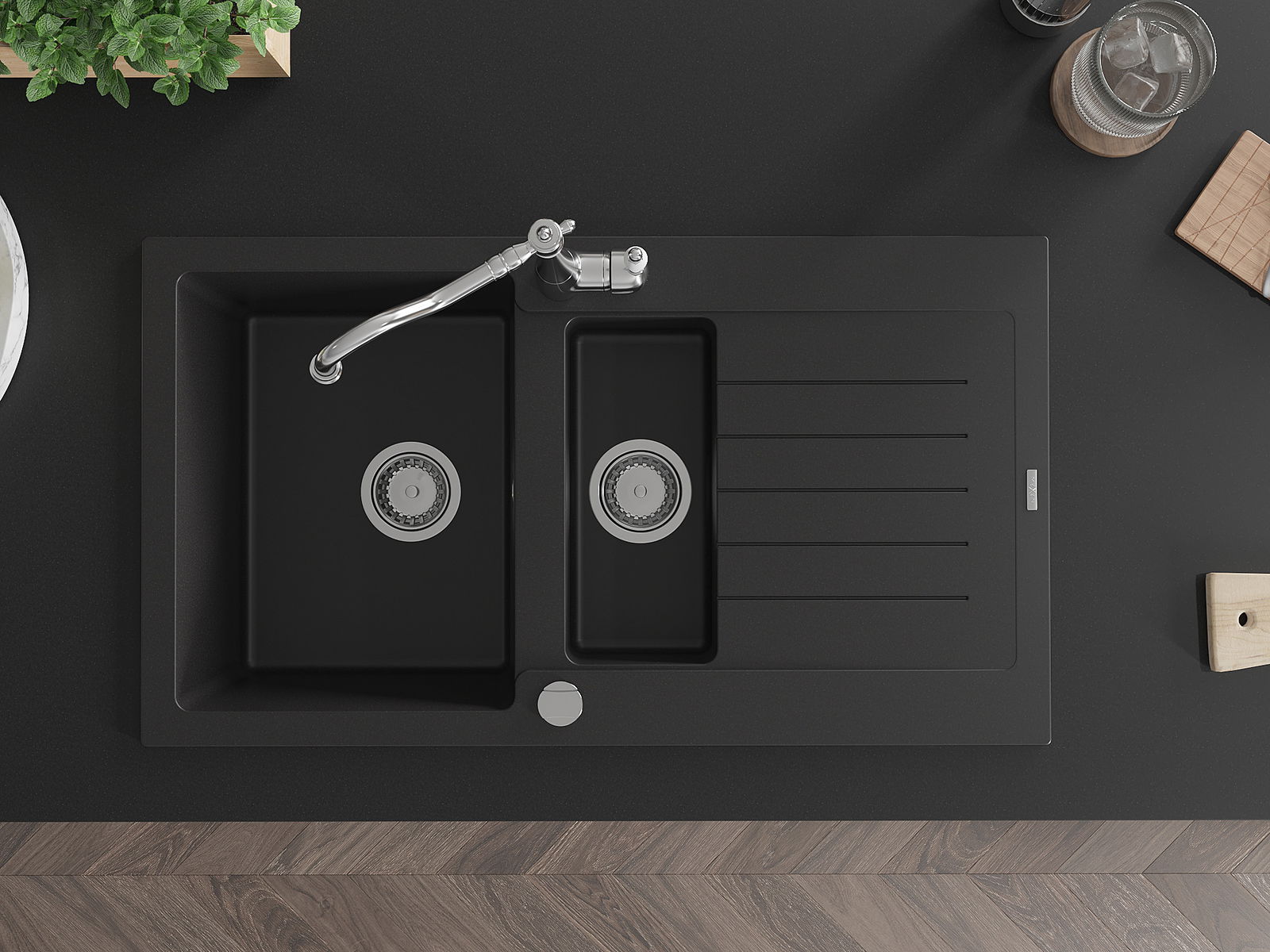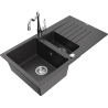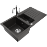 Mexen Matias гранитна мивка 1,5-камерна с отцедник и кухненски смесител Carla, черен - 6502-77-670700-00