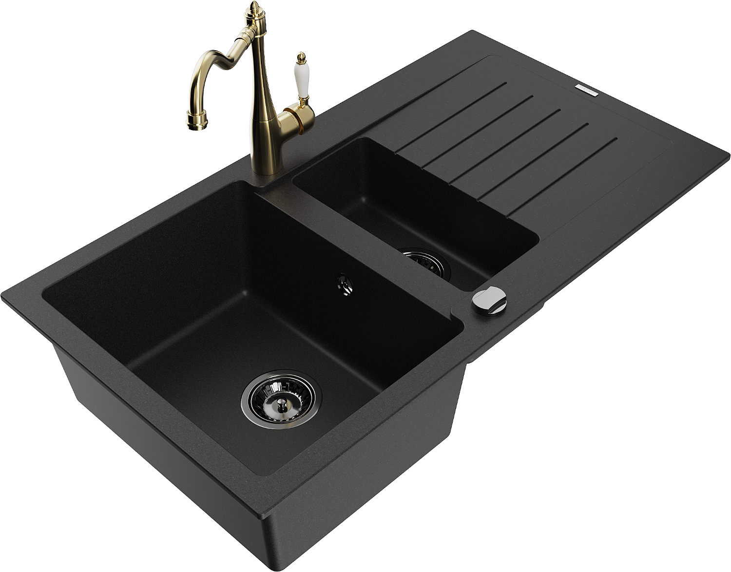 Мивка от гранит Mexen Matias 1,5-камерна с дренаж и кухненски смесител Carla, черна - 6502-77-670700-50-B