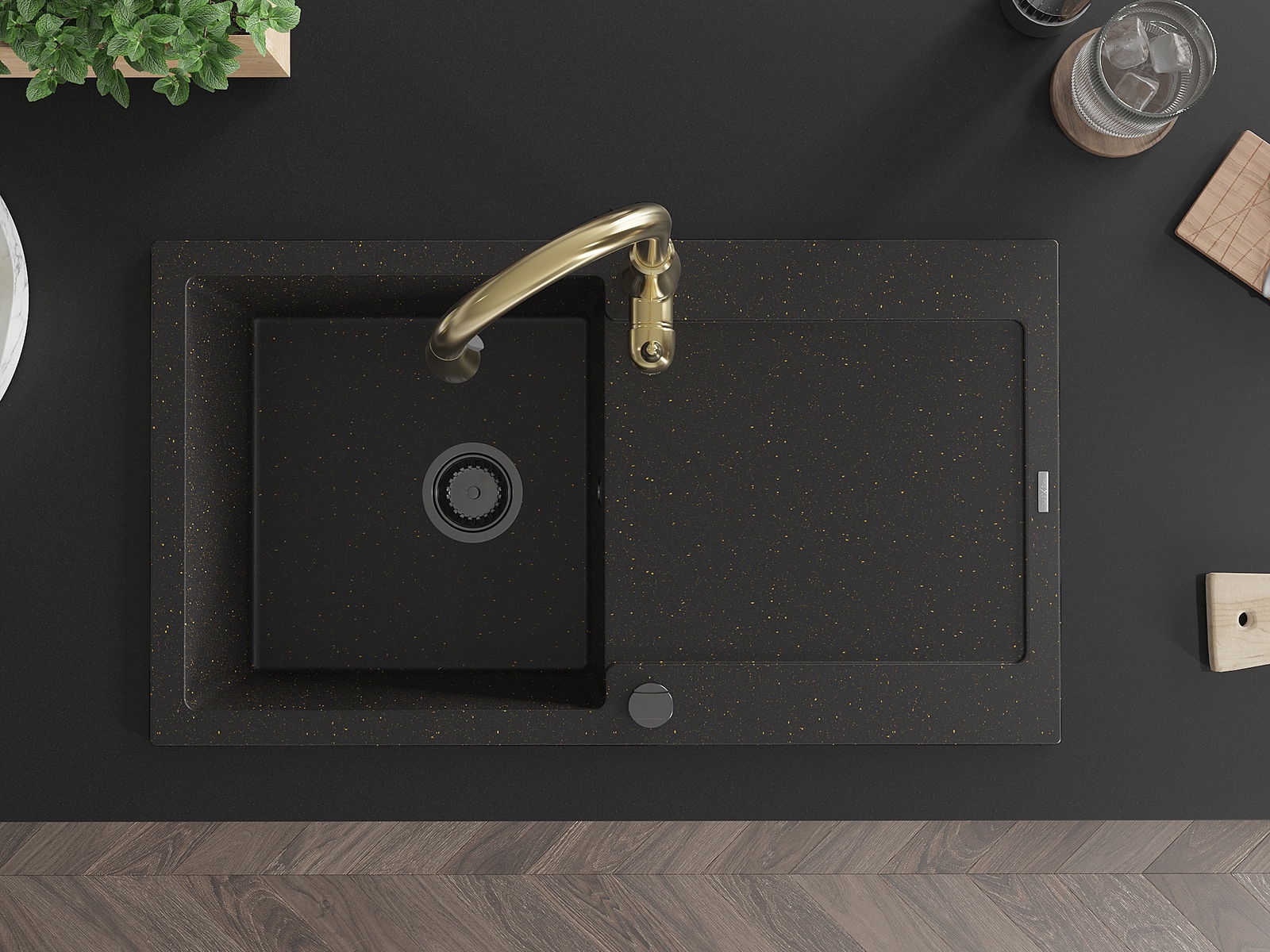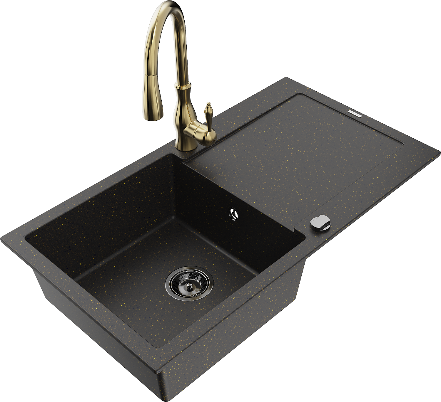 Mexen Leo гранитна мивка с 1 камера с оцекател и кухненски смесител Savita,