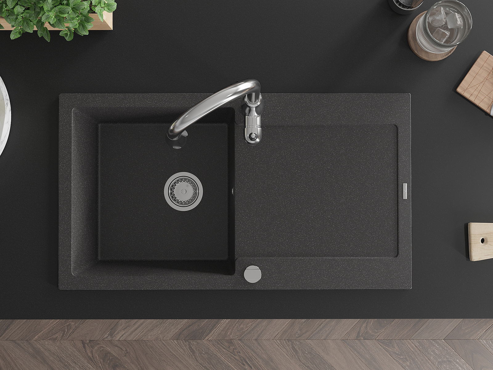 Мивката е направена от висококачествен гранит. Това е елегантно и най -вече практично допълнение към всяка кухня, независимо от нейния стил. Висококачествената и гранитна издръжливост осигуряват много години употреба.
