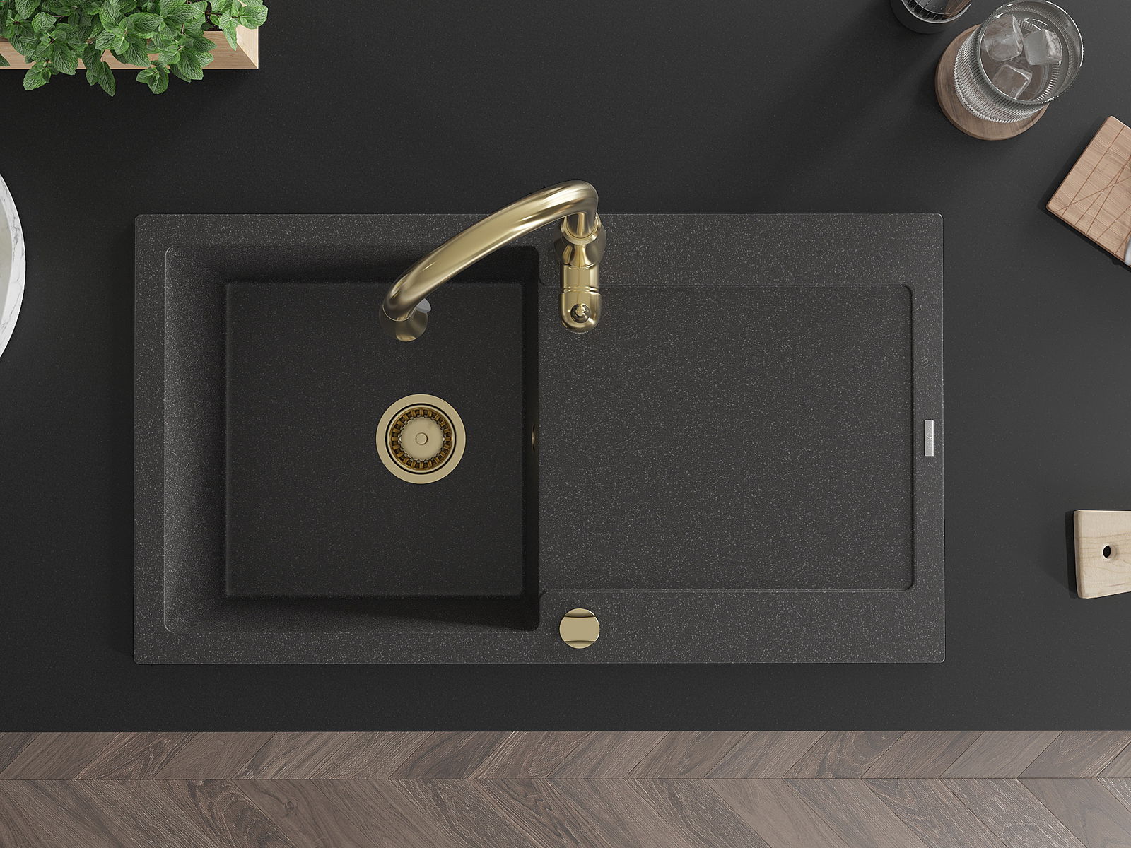 Мивката е направена от висококачествен гранит. Това е елегантно и най -вече практично допълнение към всяка кухня, независимо от нейния стил. Висококачествената и гранитна издръжливост осигуряват много години употреба.