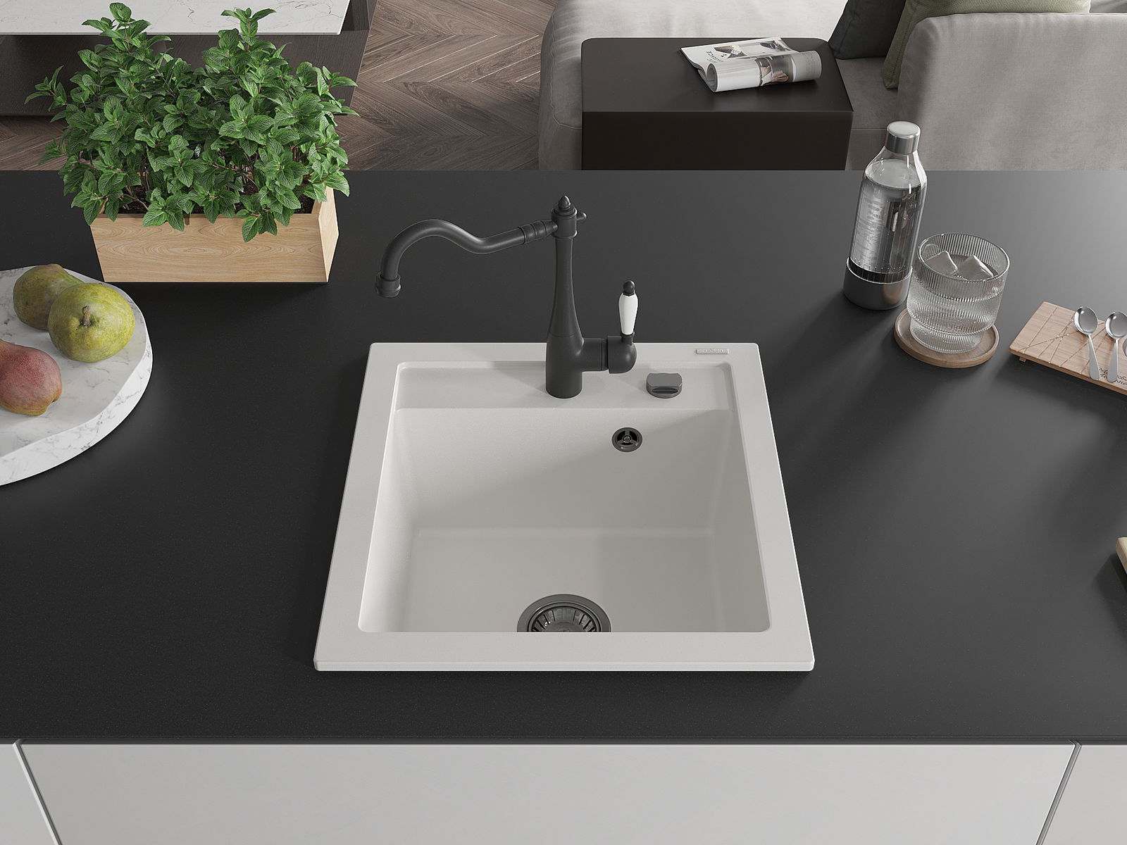 Мивката е направена от висококачествен гранит. Това е елегантно и най -вече практично допълнение към всяка кухня, независимо от нейния стил. Висококачествената и гранитна издръжливост осигуряват много години употреба.