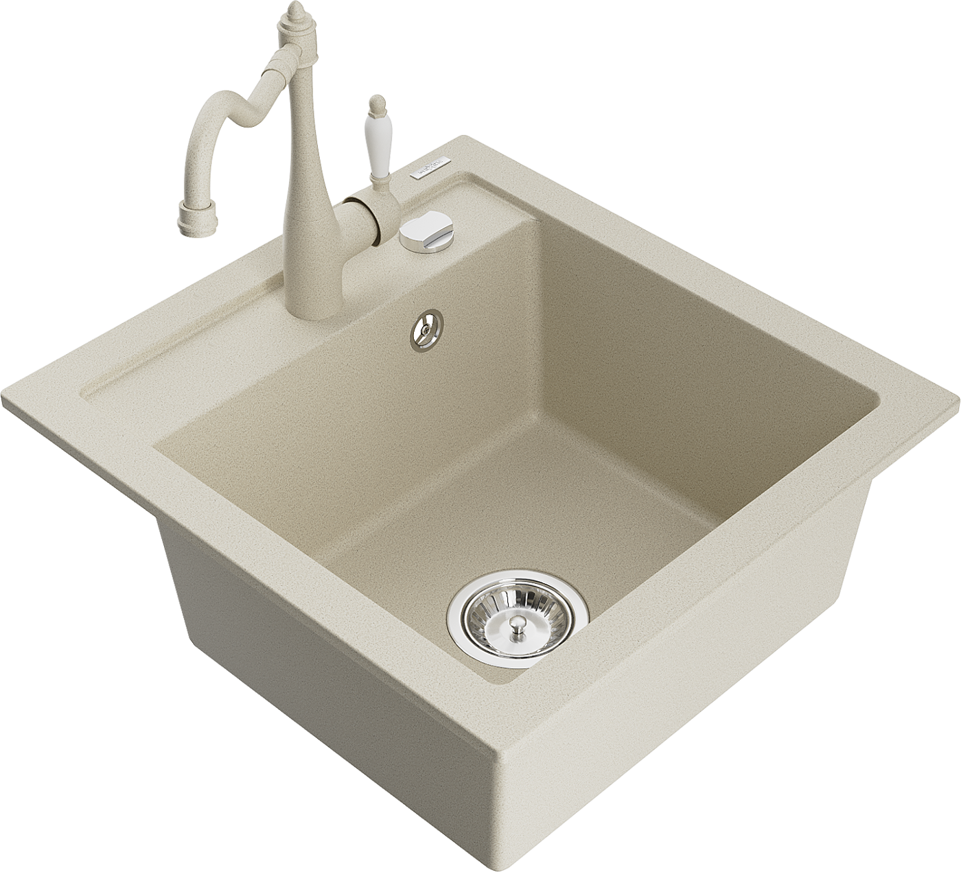 Mexen Vito гранитна мивка с 1 отделение с кухненски смесител Carla, бежов - 6503-69-670700-69