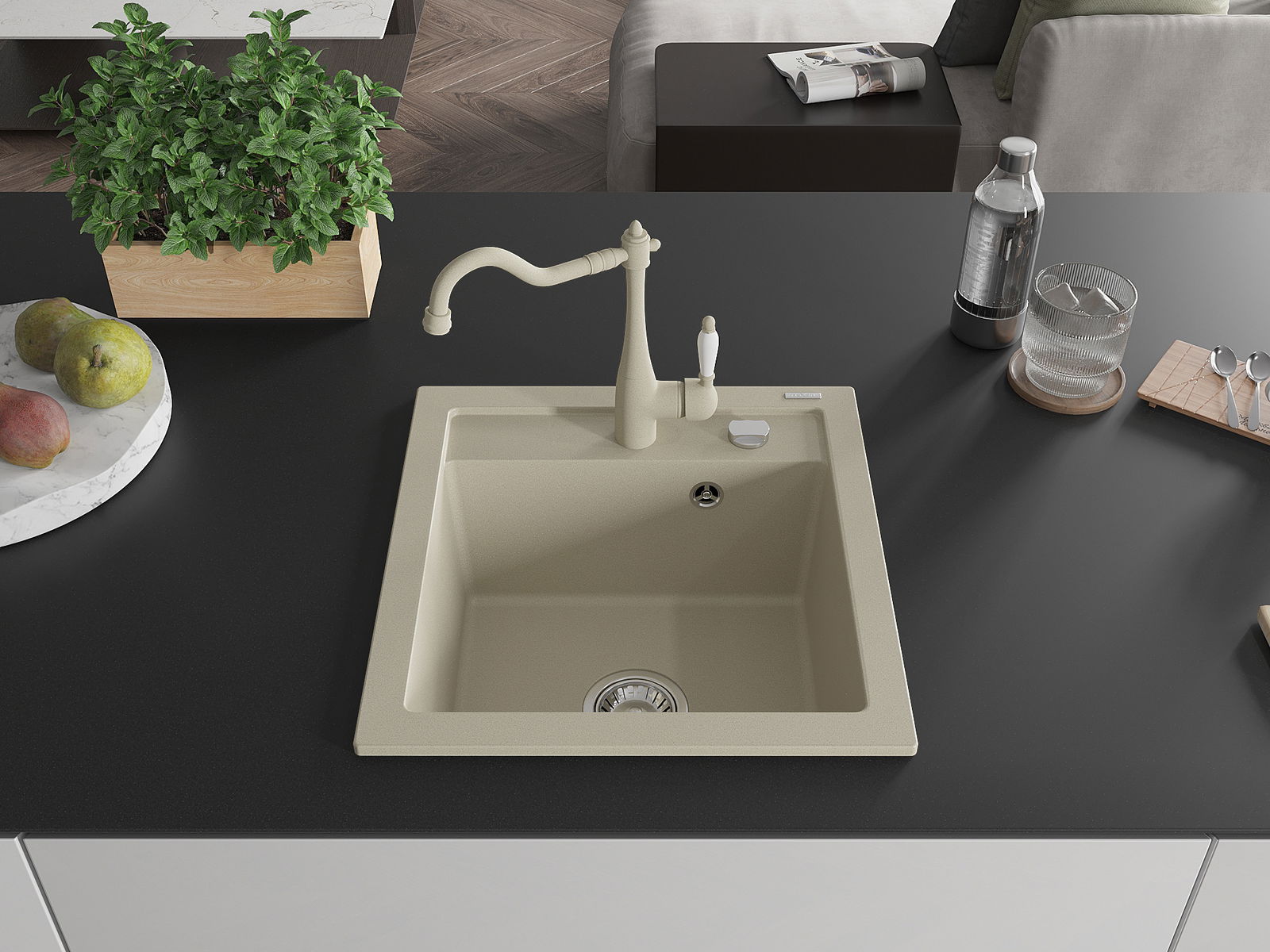Мивката е направена от висококачествен гранит. Това е елегантно и най -вече практично допълнение към всяка кухня, независимо от нейния стил. Висококачествената и гранитна издръжливост осигуряват много години употреба.