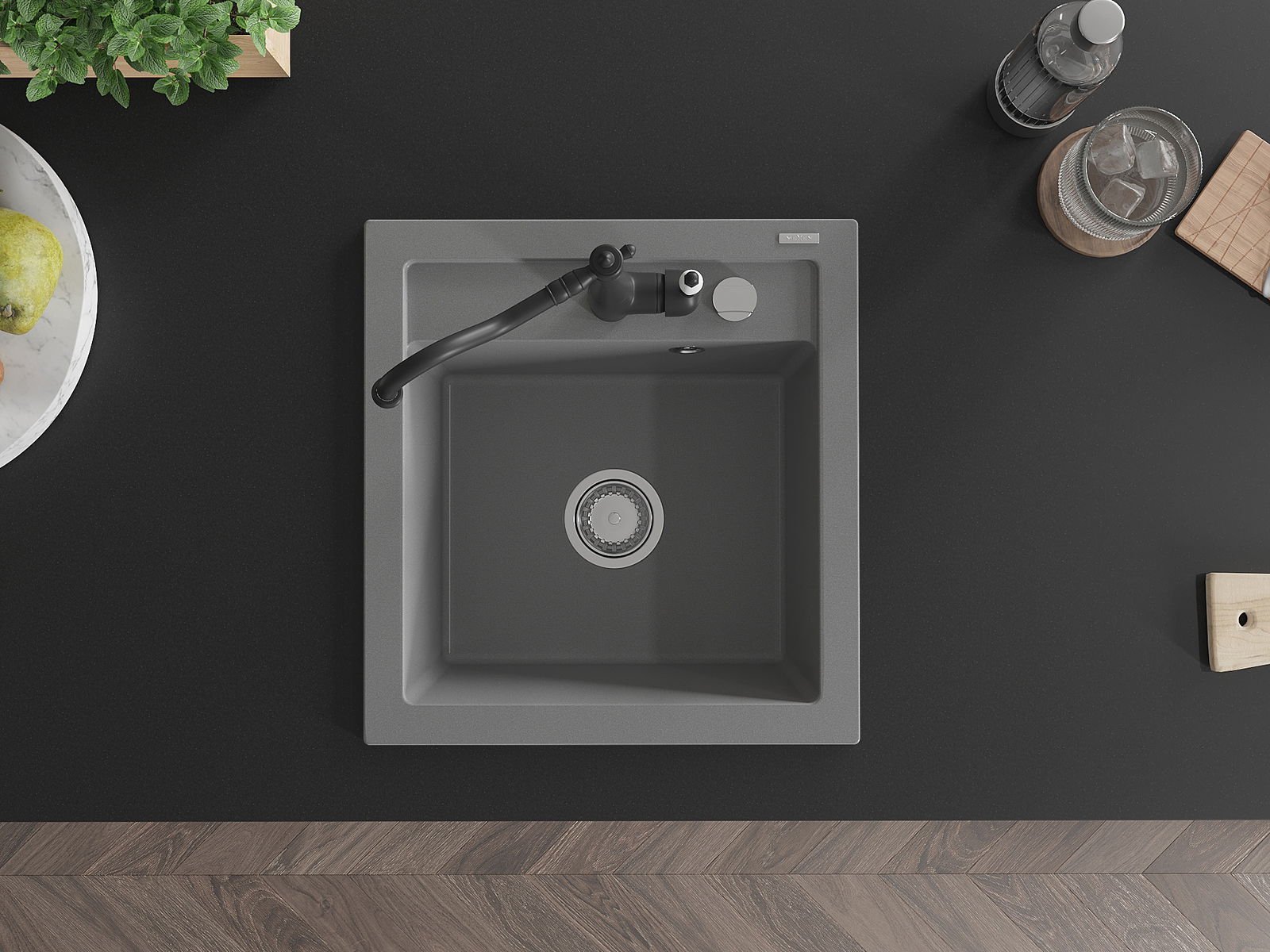 Mexen Vito кухненска мивка от гранит с 1 отделение и смесител Carla, сив - 6503-71-670700-70