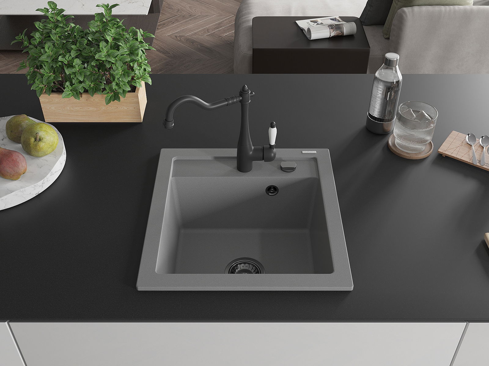 Мивката е направена от висококачествен гранит. Това е елегантно и най -вече практично допълнение към всяка кухня, независимо от нейния стил. Висококачествената и гранитна издръжливост осигуряват много години употреба.