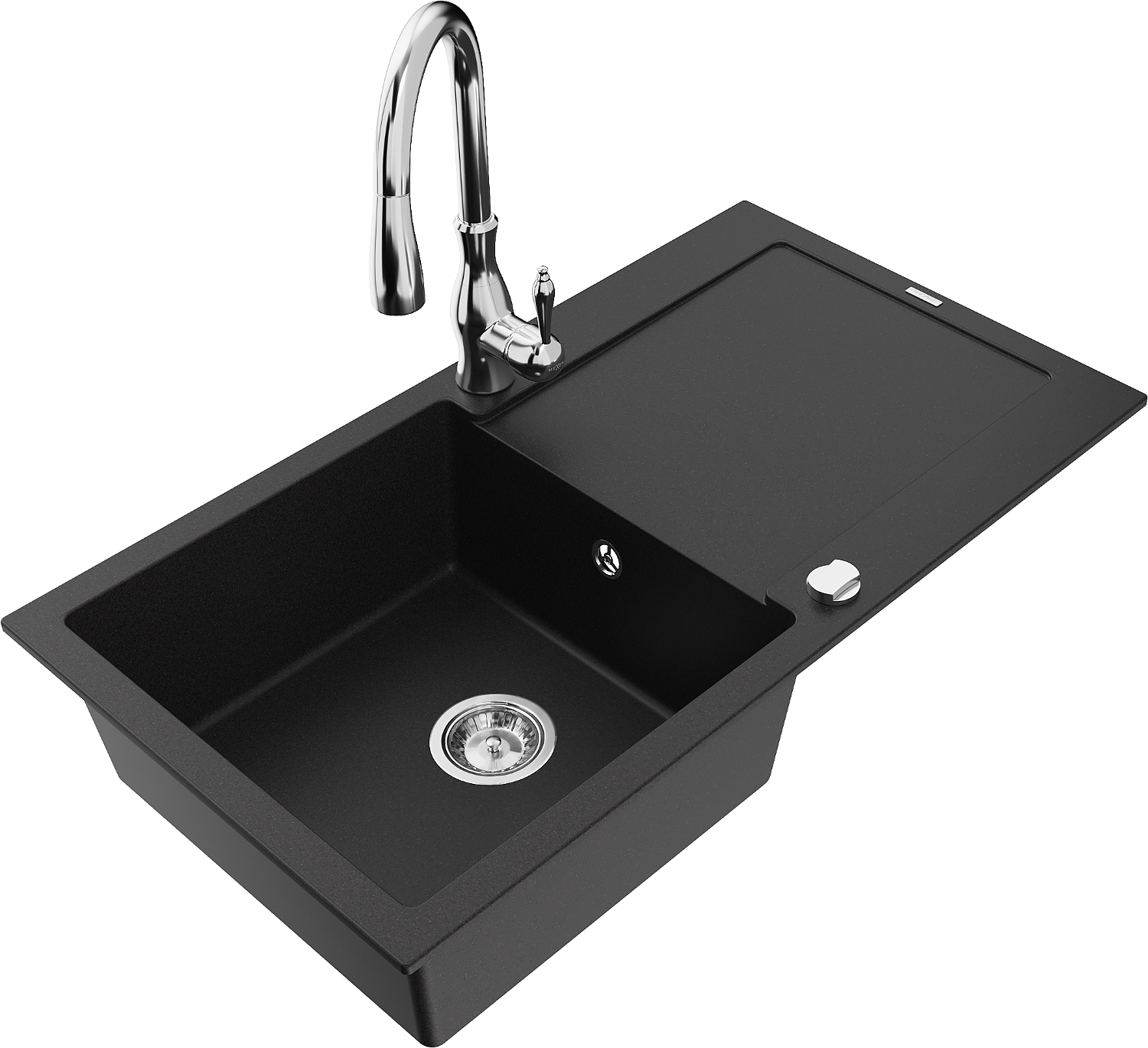 Мивка от гранит Mexen Leo с една камера и отцедник и кухненски смесител Savita, черен - 6501-77-672601-00
