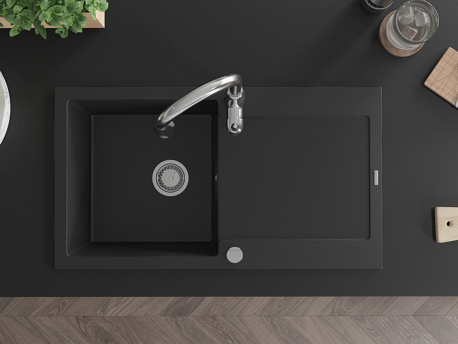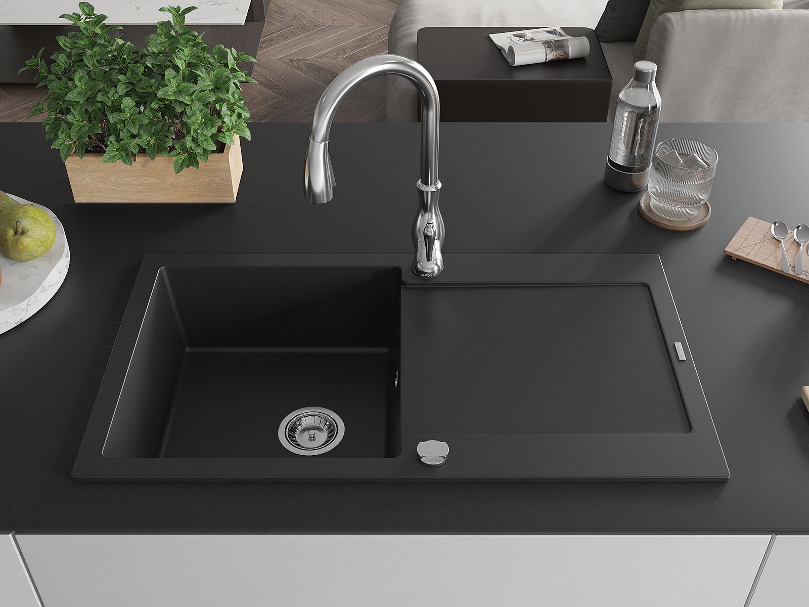 Мивката е направена от висококачествен гранит. Това е елегантно и най -вече практично допълнение към всяка кухня, независимо от нейния стил. Висококачествената и гранитна издръжливост осигуряват много години употреба.