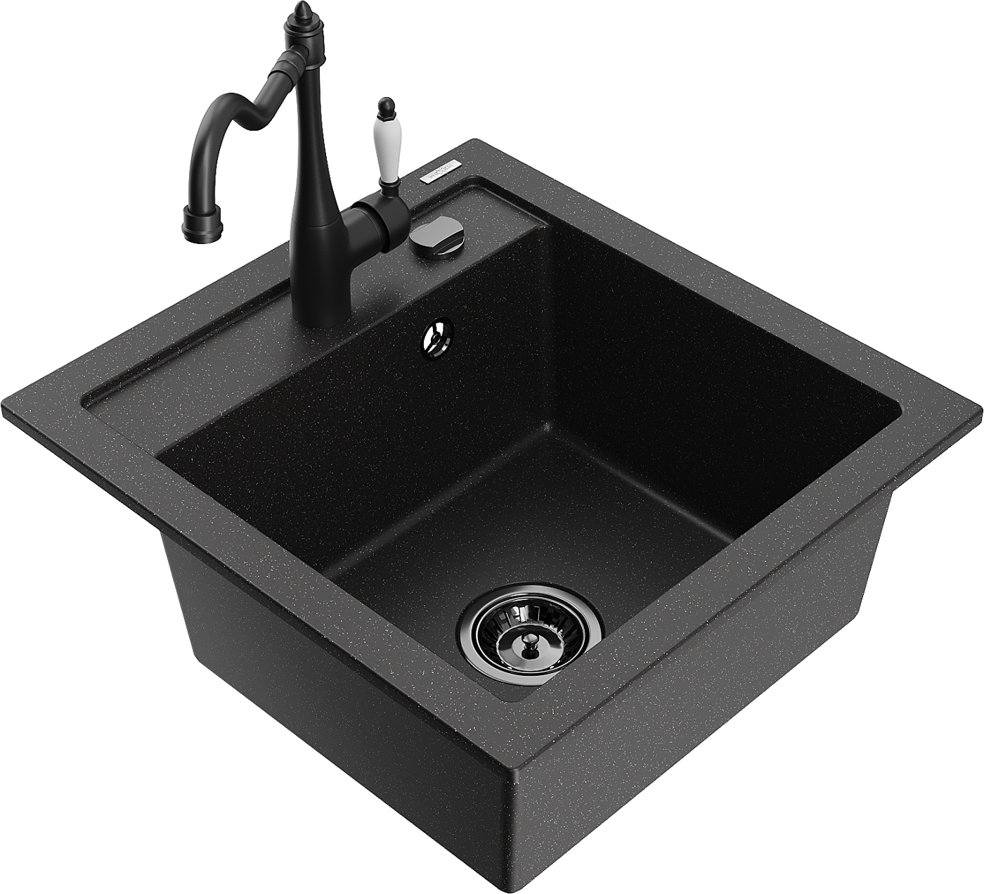 Mexen Vito гранитна кухненска мивка с 1 камера и кухненски смесител Carla, черен/сребърен металик - 6503-73-670700-70-B