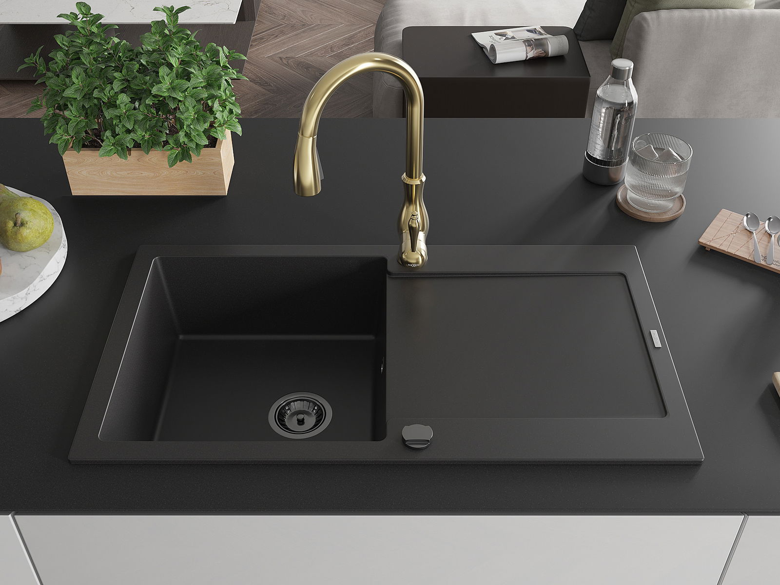 Мивката е направена от висококачествен гранит. Това е елегантно и най -вече практично допълнение към всяка кухня, независимо от нейния стил. Висококачествената и гранитна издръжливост осигуряват много години употреба.
