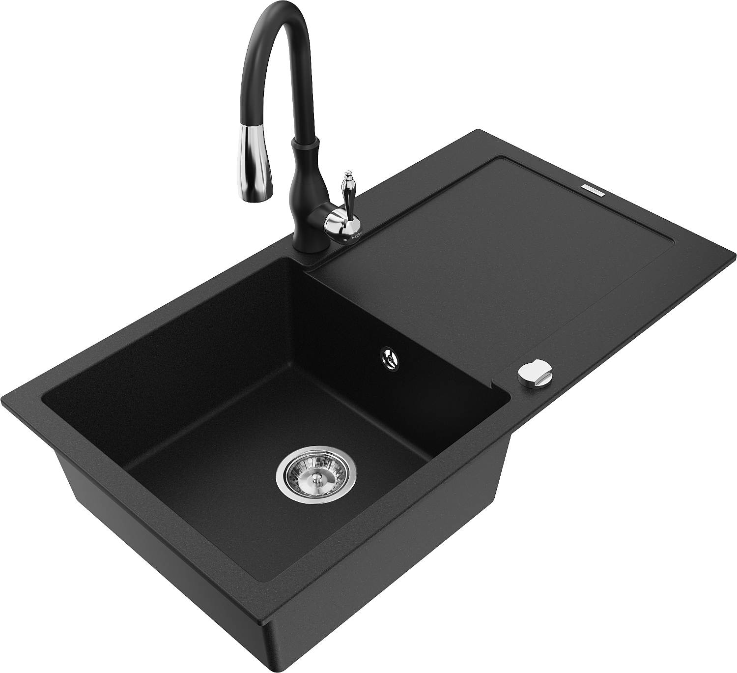 Mexen Leo гранитна мивка с 1 камера, отцедник и кухненски смесител Savita, черен - 6501-77-672601-70