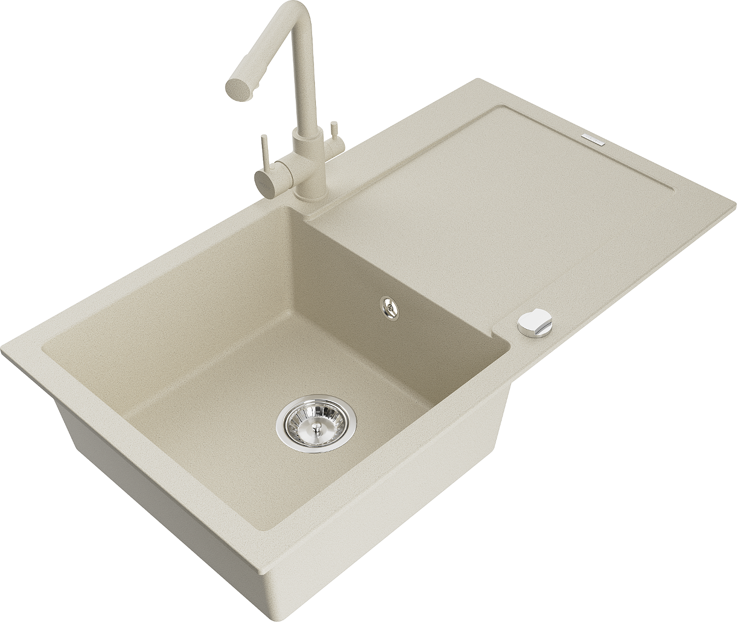 Повърхността на мивката е устойчива на петна и обезцветяване, благодарение на които е лесно да се почиства и запазва цвета си за дълго време. Естетически и практически допълващи всяка кухня.