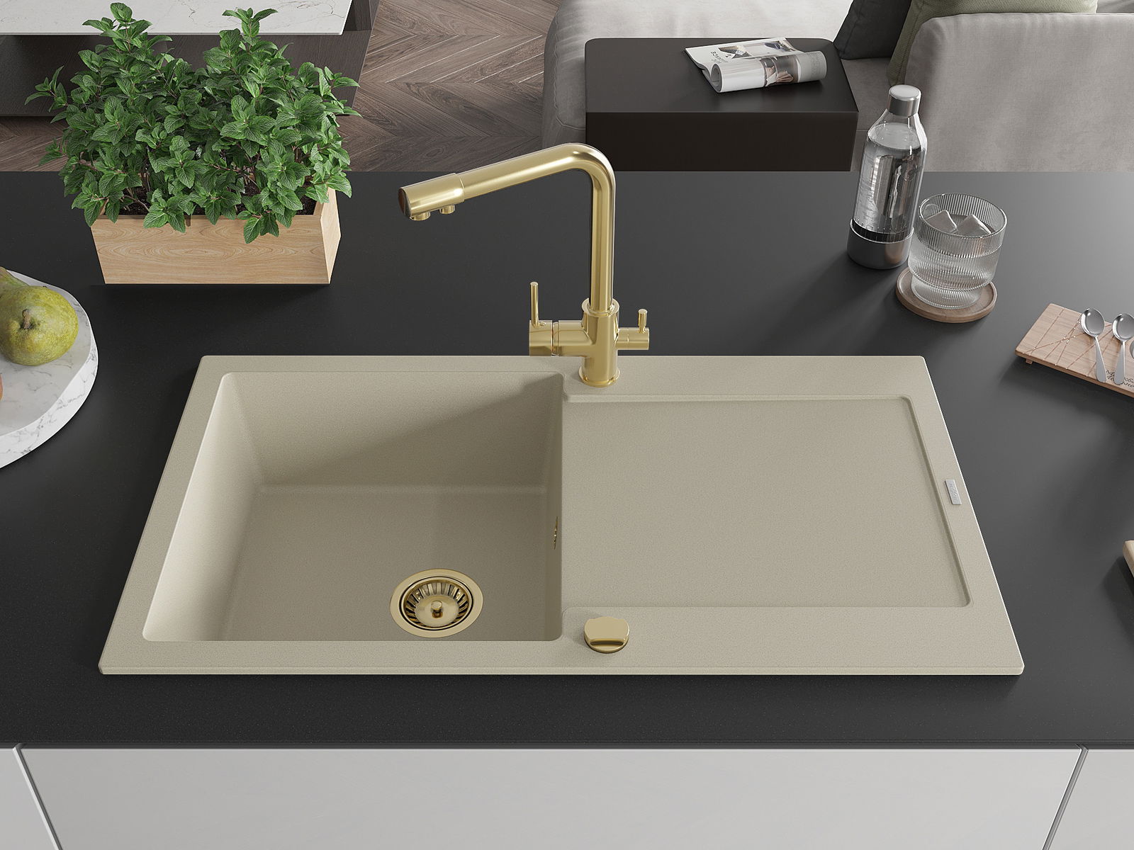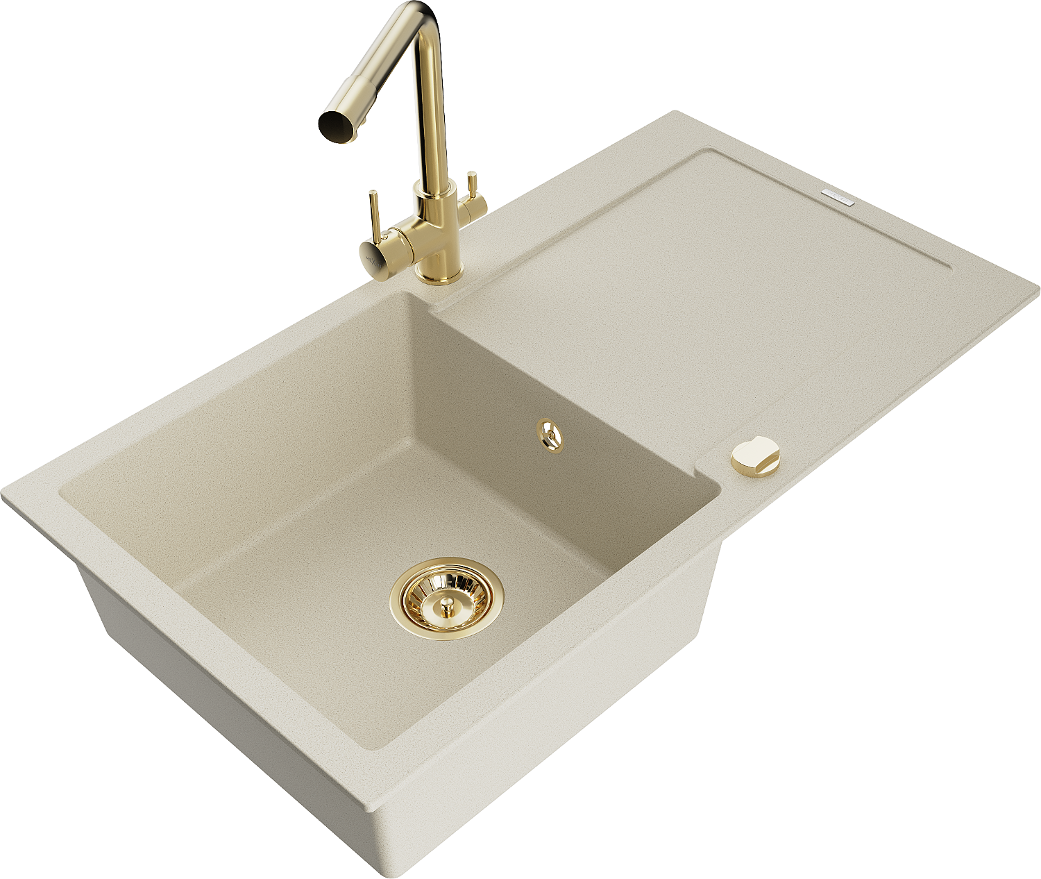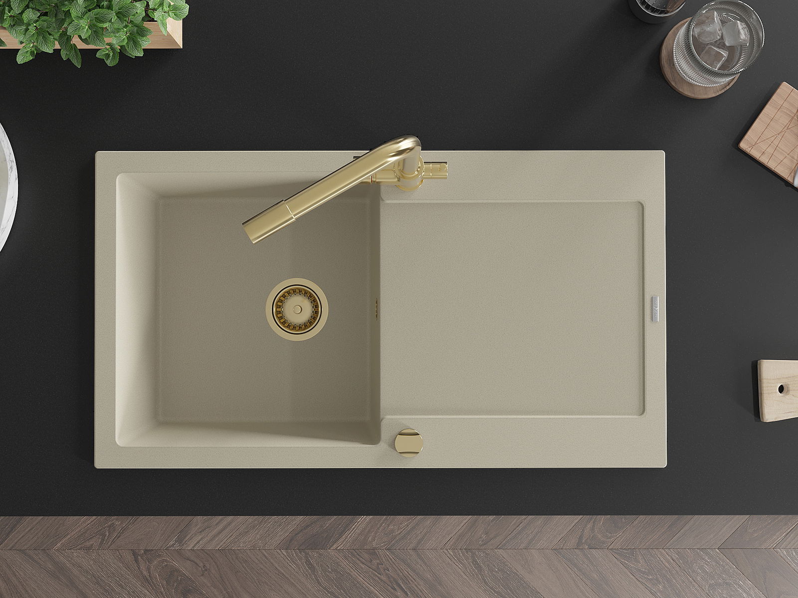 Mexen Leo градинен мивка с 1 камера с отцеденик и кухненски смесител Duero, бежов - 6501-69-671600-50