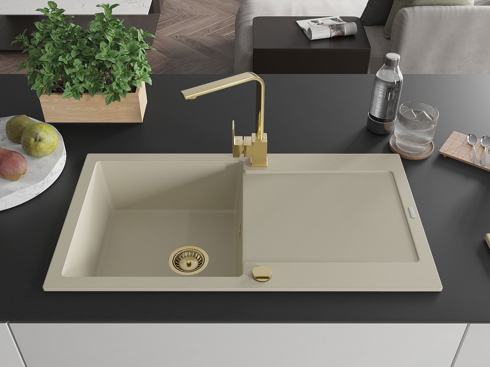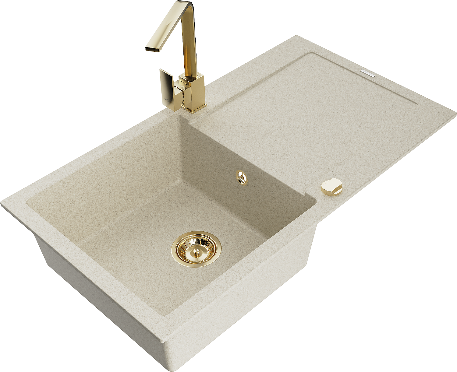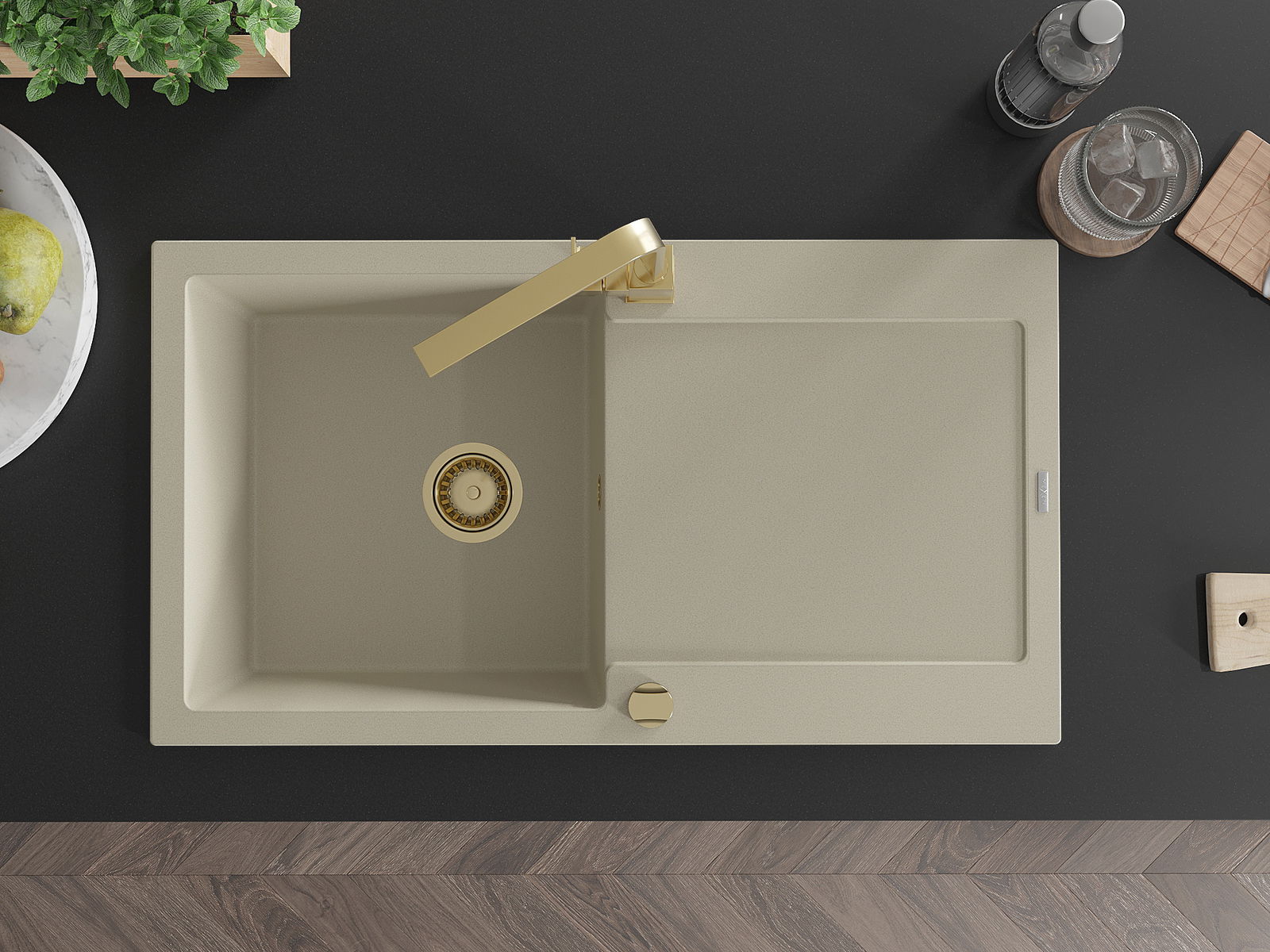 Mexen Leo грани котлена мивка с една камера и отцедник с кухненски смесител Rita, бежов - 6501-69-670300-50