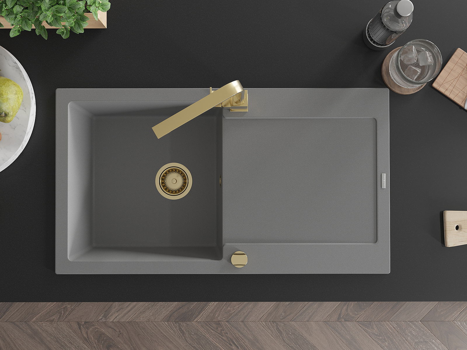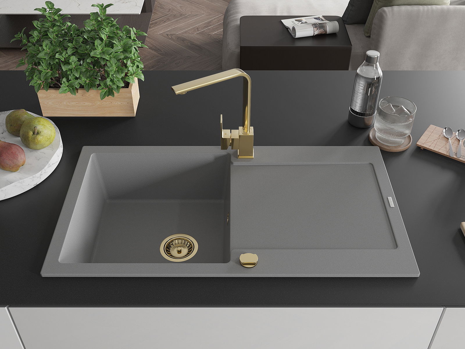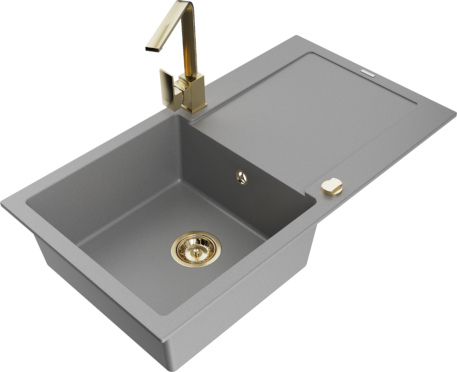 Mexen Leo гранитна мивка с 1 отделение, с отцеждаща площ и кухненски смесител Rita, сив - 6501-71-670300-50