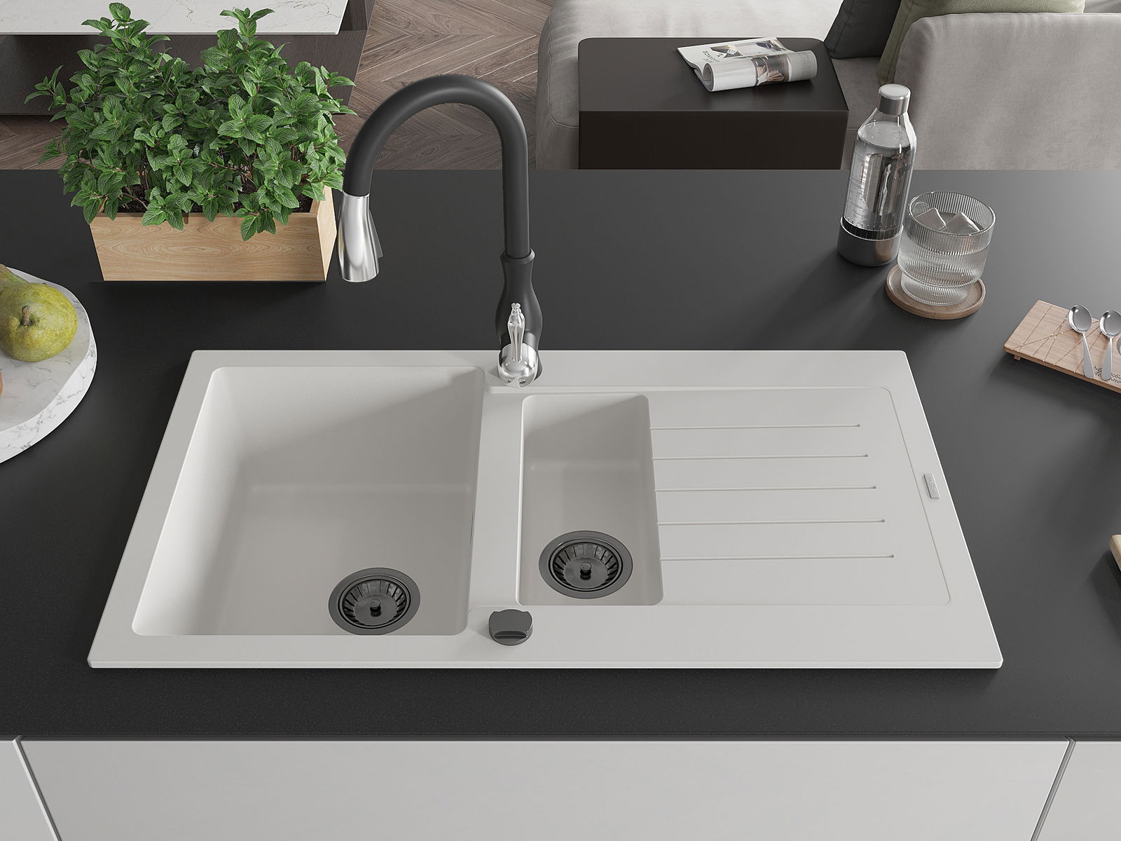 Повърхността на мивката е устойчива на петна и обезцветяване, благодарение на които е лесно да се почиства и запазва цвета си за дълго време. Естетически и практически допълващи всяка кухня.