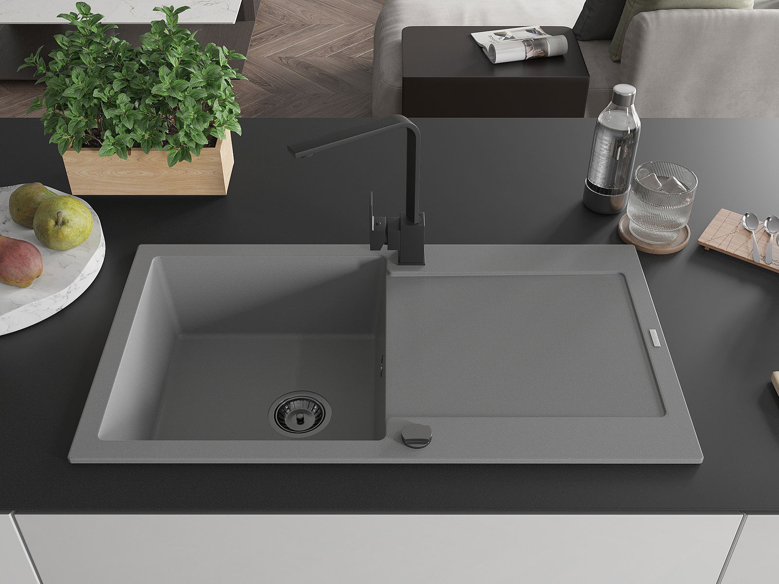 Мивката е направена от висококачествен гранит. Това е елегантно и най -вече практично допълнение към всяка кухня, независимо от нейния стил. Висококачествената и гранитна издръжливост осигуряват много години употреба.