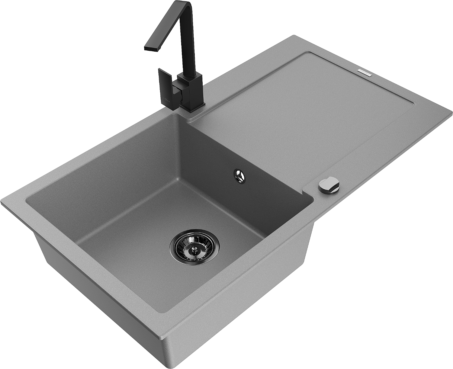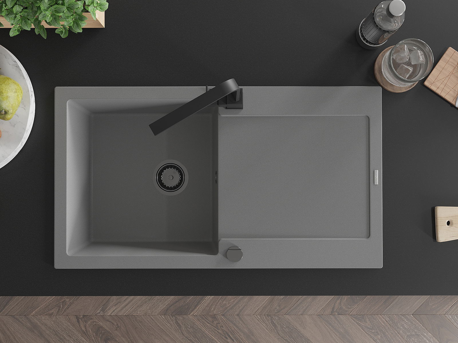 Mexen Leo гранитна мивка с 1 корито с отцедник и кухненски смесител Rita, сив - 6501-71-670300-70-B