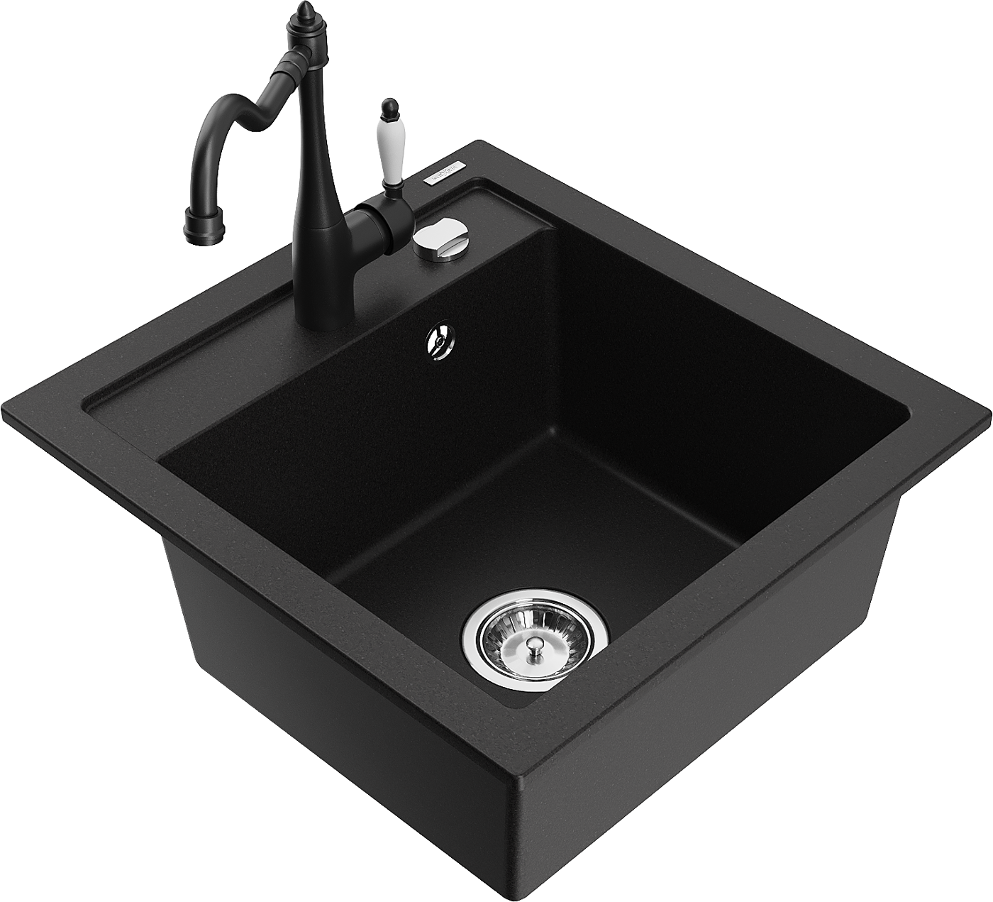 Mexen Vito гранитна мивка с 1 комора с кухненски смесител Carla, черна
