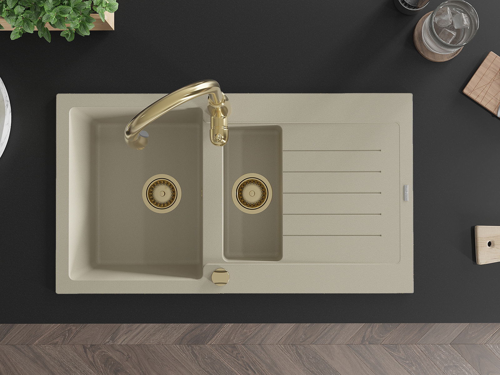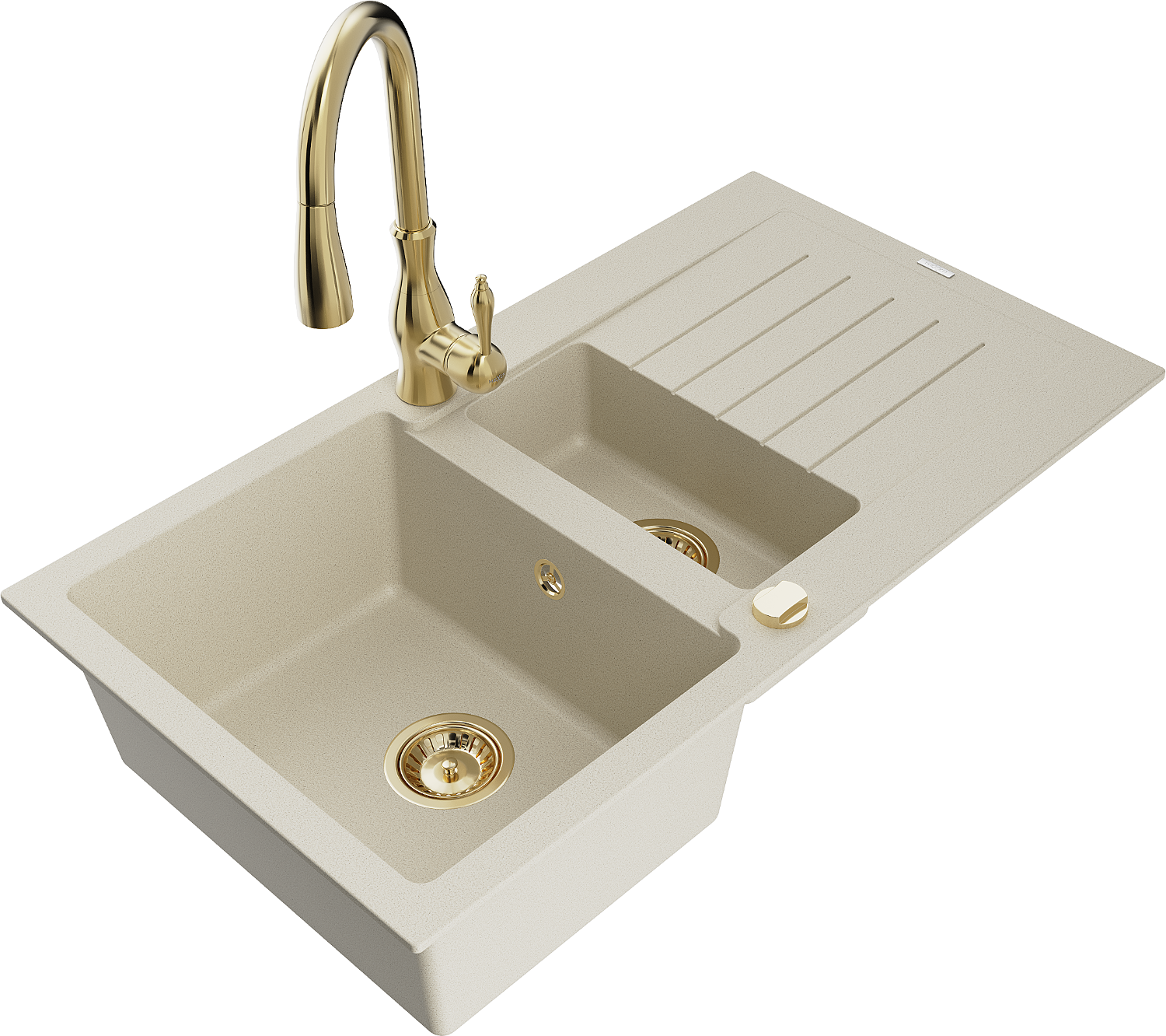 Mexen Matias гранитна мивка с 1,5 камери с отцедник и кухненски смесител Savita, бежов - 6502-69-672601-50