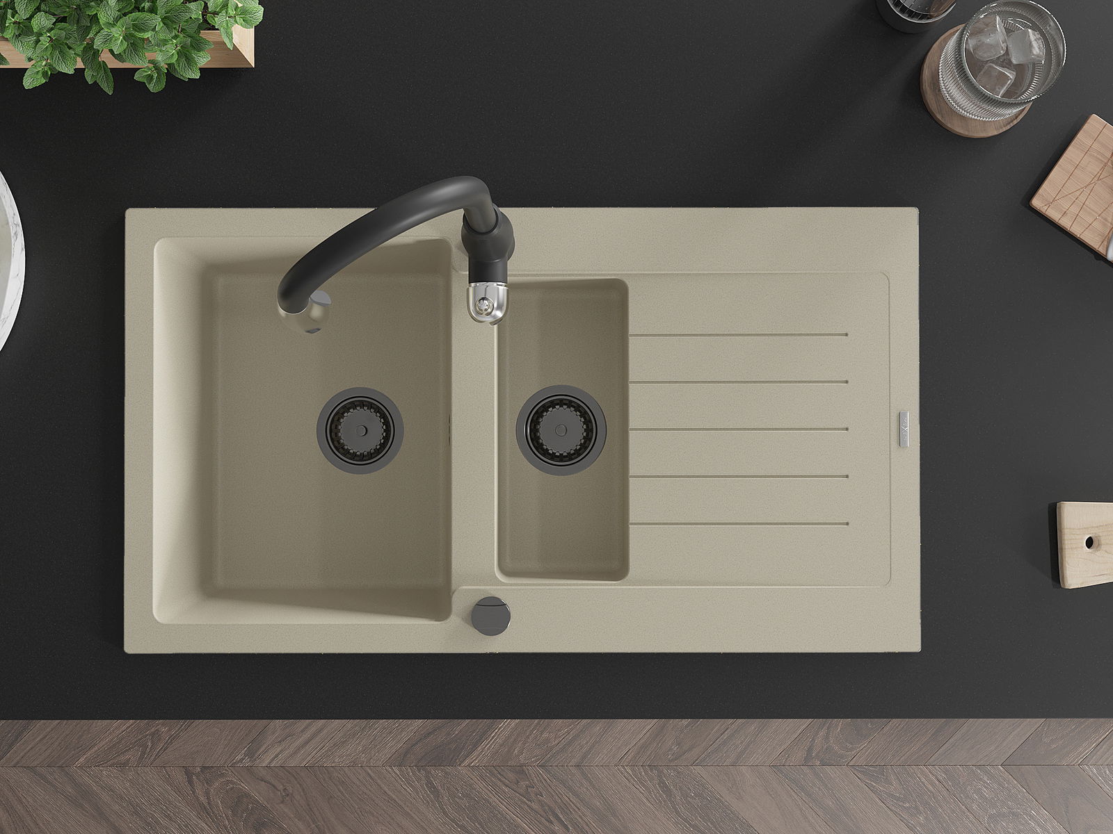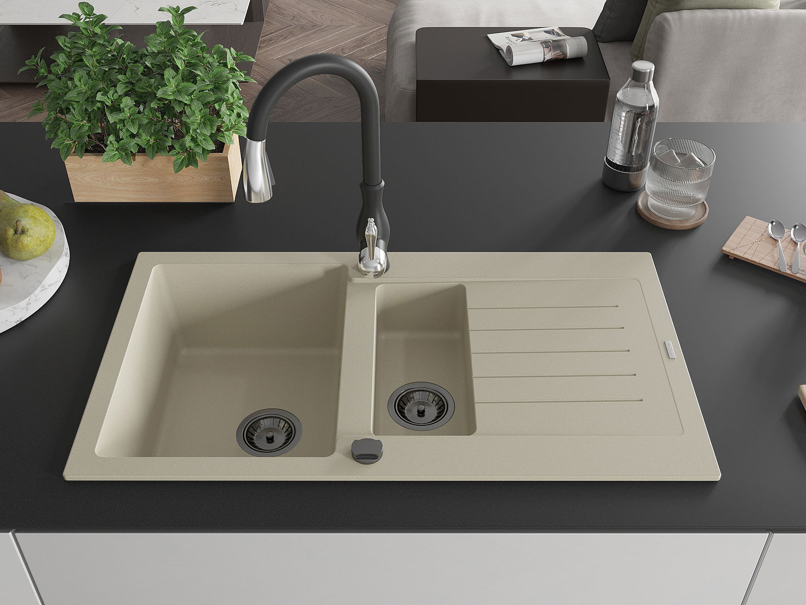 Мивката е направена от висококачествен гранит. Това е елегантно и най -вече практично допълнение към всяка кухня, независимо от нейния стил. Висококачествената и гранитна издръжливост осигуряват много години употреба.