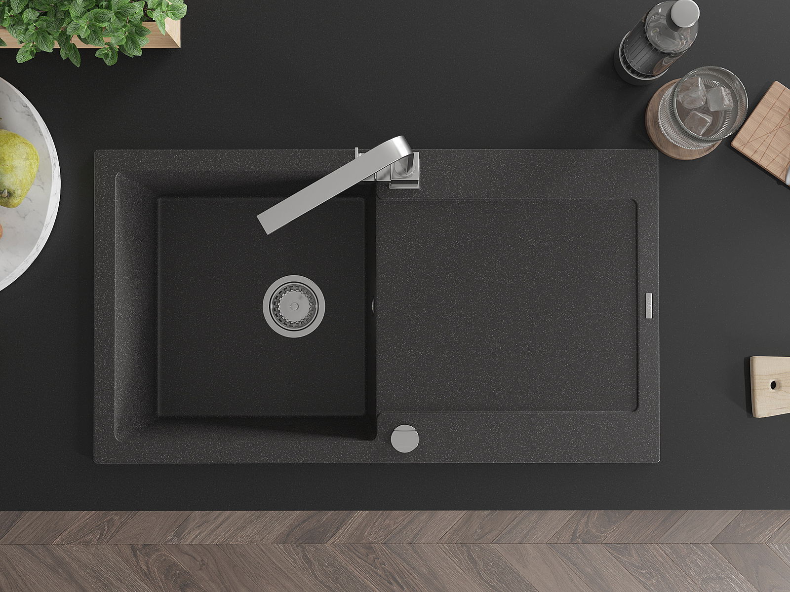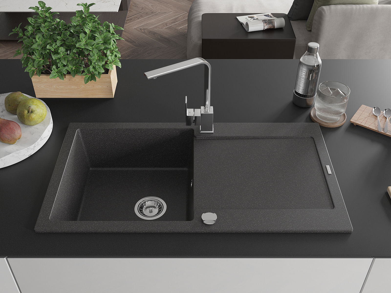 Мивката е направена от висококачествен гранит. Това е елегантно и най -вече практично допълнение към всяка кухня, независимо от нейния стил. Висококачествената и гранитна издръжливост осигуряват много години употреба.