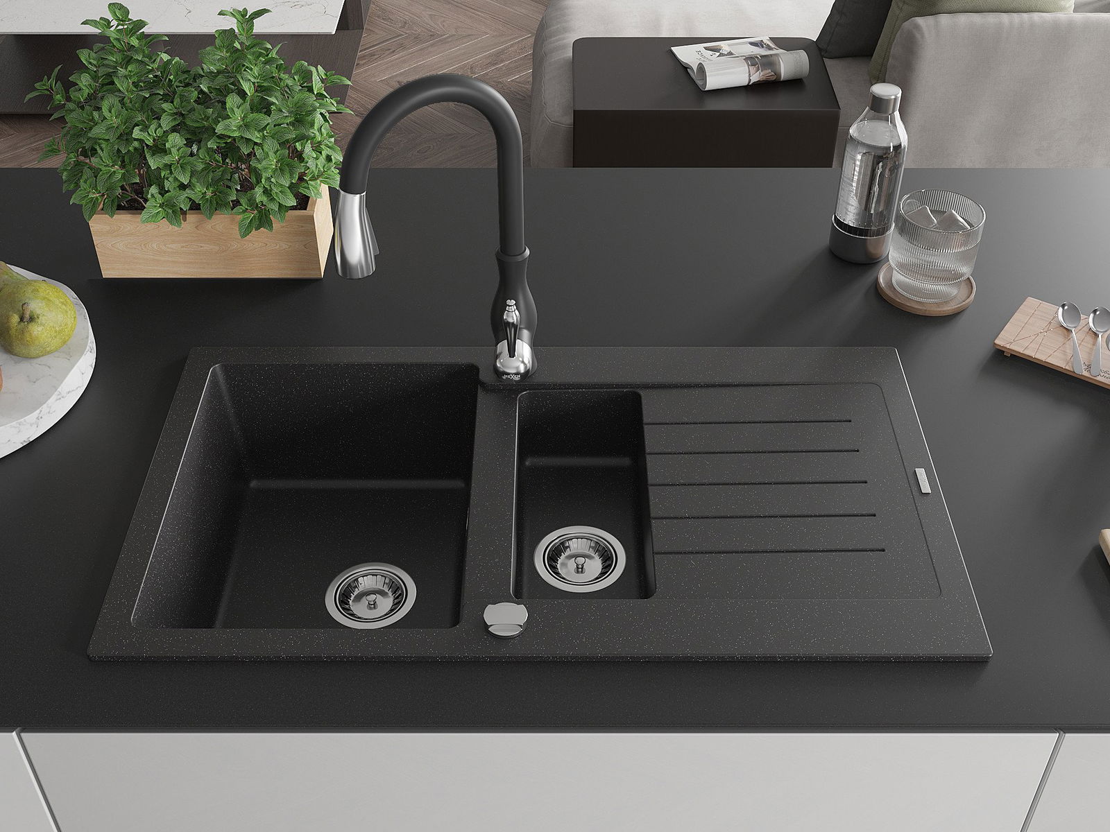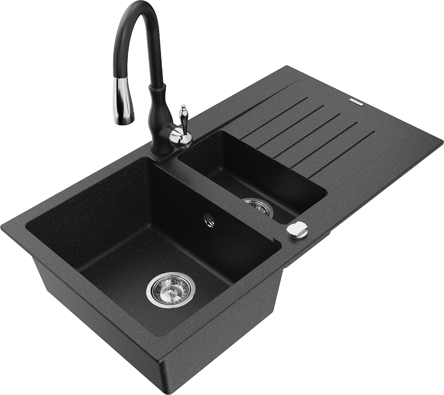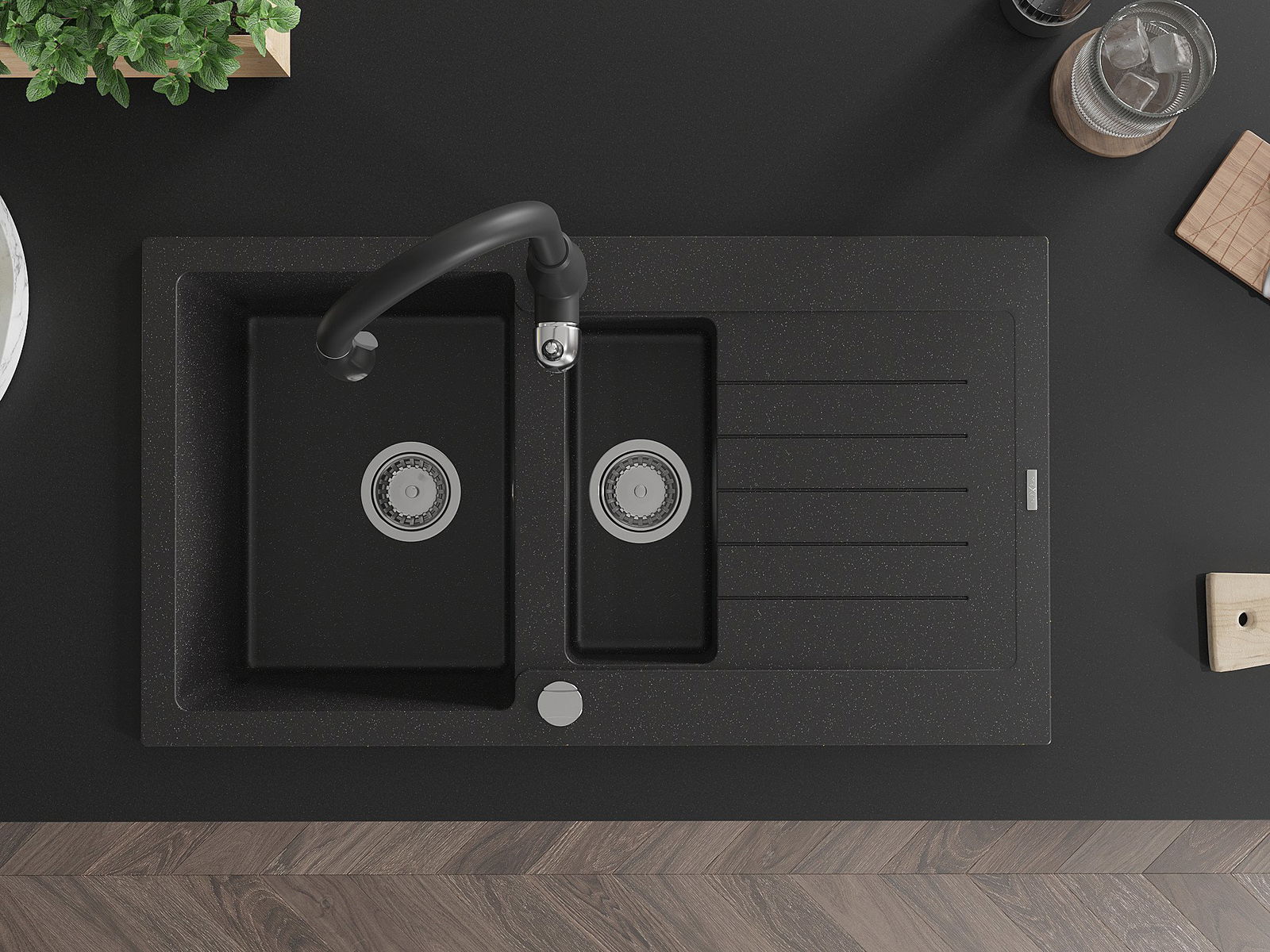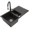 Mexen Matias гранитна мивка с 1,5 корита с отцедник и кухненски смесител Savita,