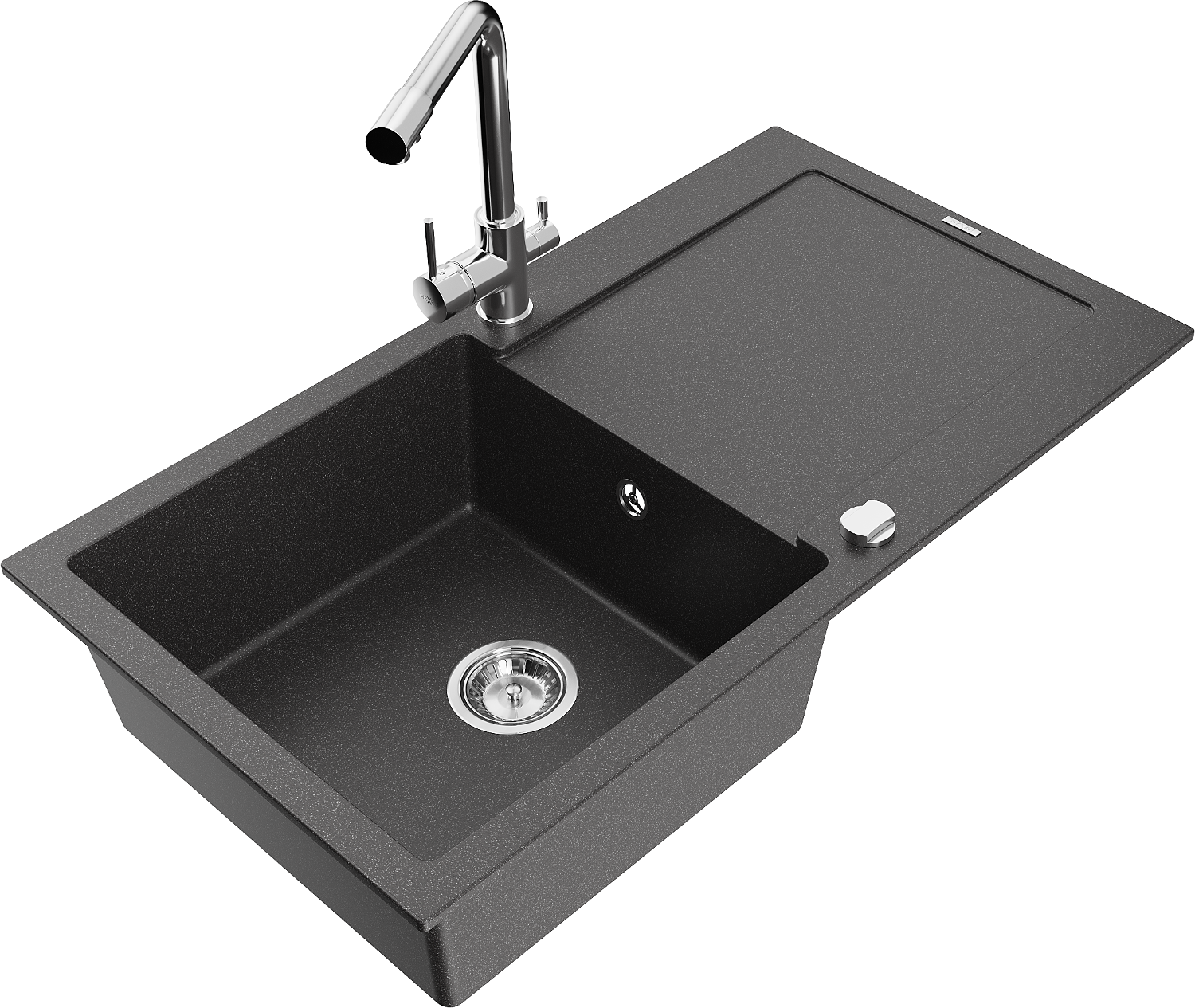 Mexen Leo гранитна мивка с едно корито със сушилник и кухненски смесител