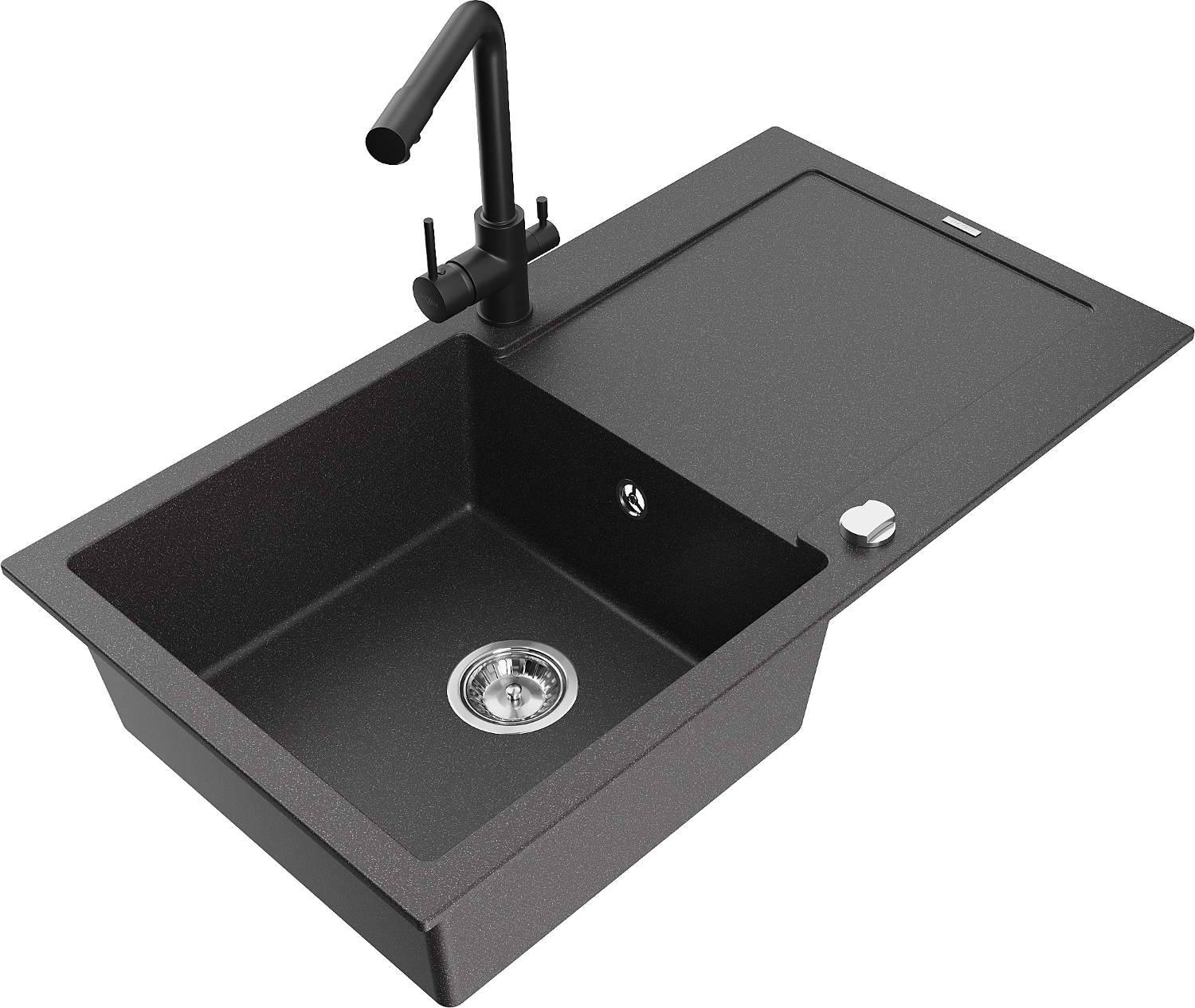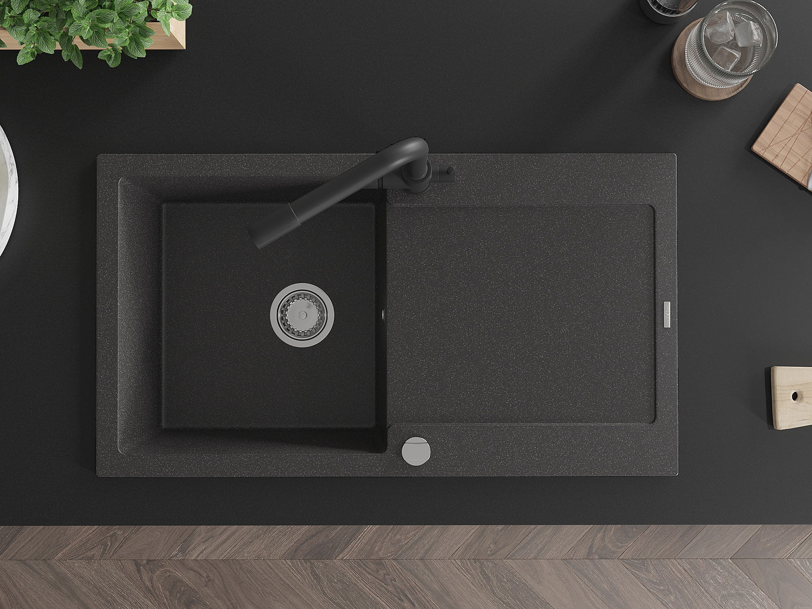 Мивката е направена от висококачествен гранит. Това е елегантно и най -вече практично допълнение към всяка кухня, независимо от нейния стил. Висококачествената и гранитна издръжливост осигуряват много години употреба.