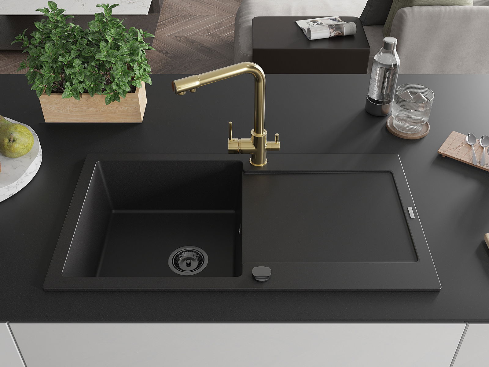 Мивката е направена от висококачествен гранит. Това е елегантно и най -вече практично допълнение към всяка кухня, независимо от нейния стил. Висококачествената и гранитна издръжливост осигуряват много години употреба.