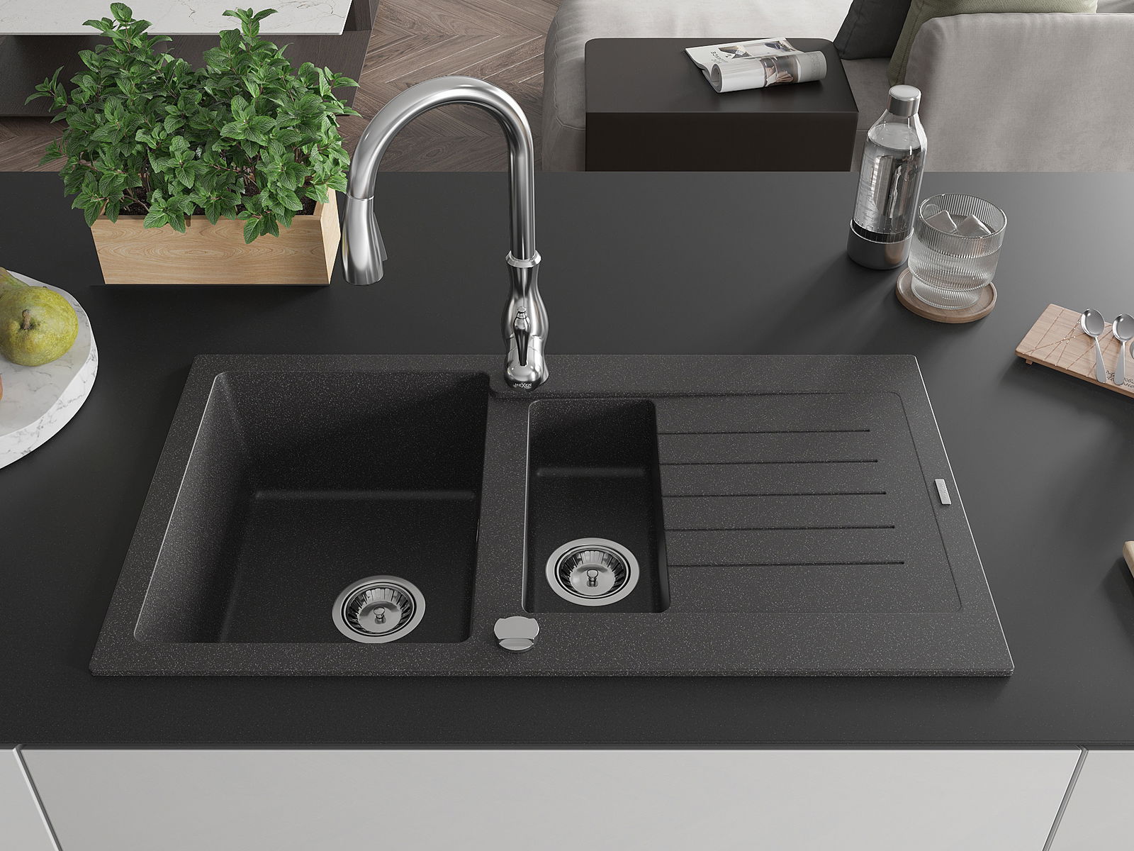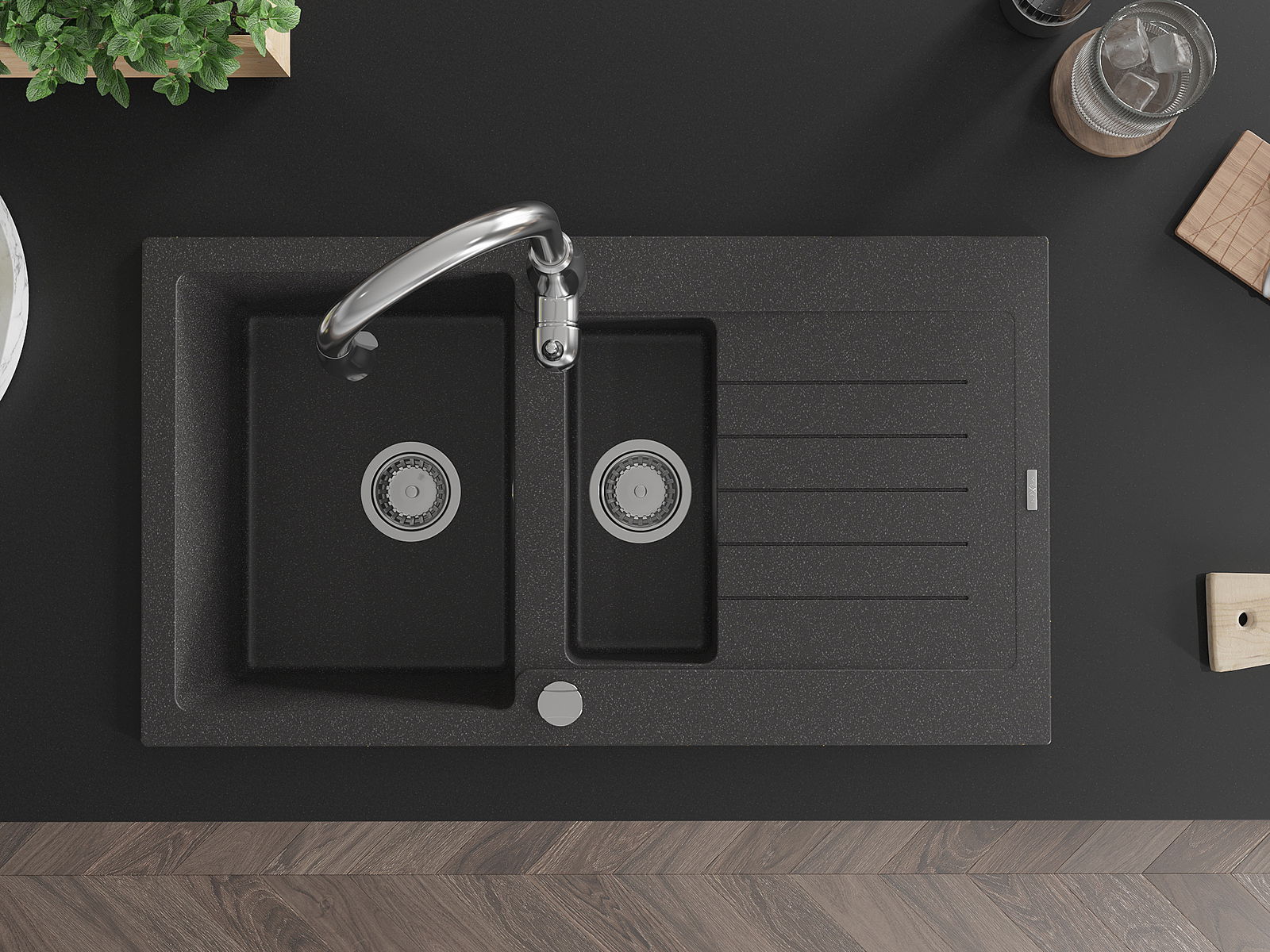 Мивката е направена от висококачествен гранит. Това е елегантно и най -вече практично допълнение към всяка кухня, независимо от нейния стил. Висококачествената и гранитна издръжливост осигуряват много години употреба.