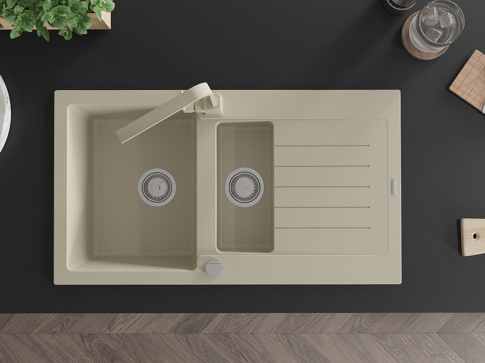 Mexen Matias гранитна мивка 1,5-камерна с отцедник и кухненски смесител Rita, бежов - 6502-69-670300-69