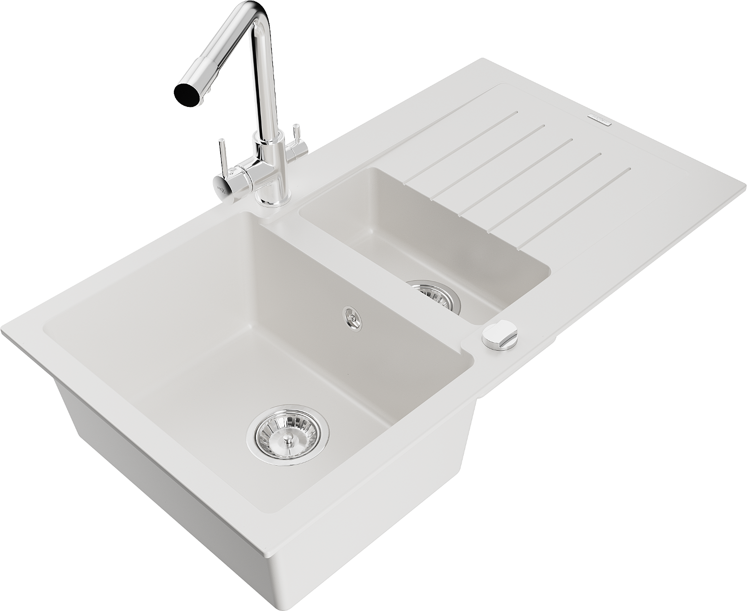 Мекскен Матиас гранитна мивка с 1,5 камери с дренаж и кухненски смесител Duero, бял - 6502-20-671600-00