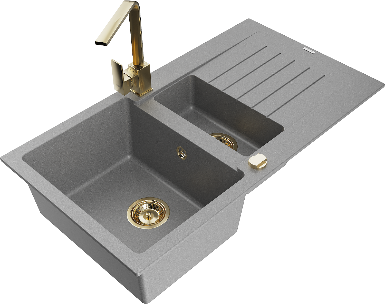 Mexen Matias гранитна мивка 1,5 камерен с дренаж и кухненски смесител Rita, сив - 6502-71-670300-50