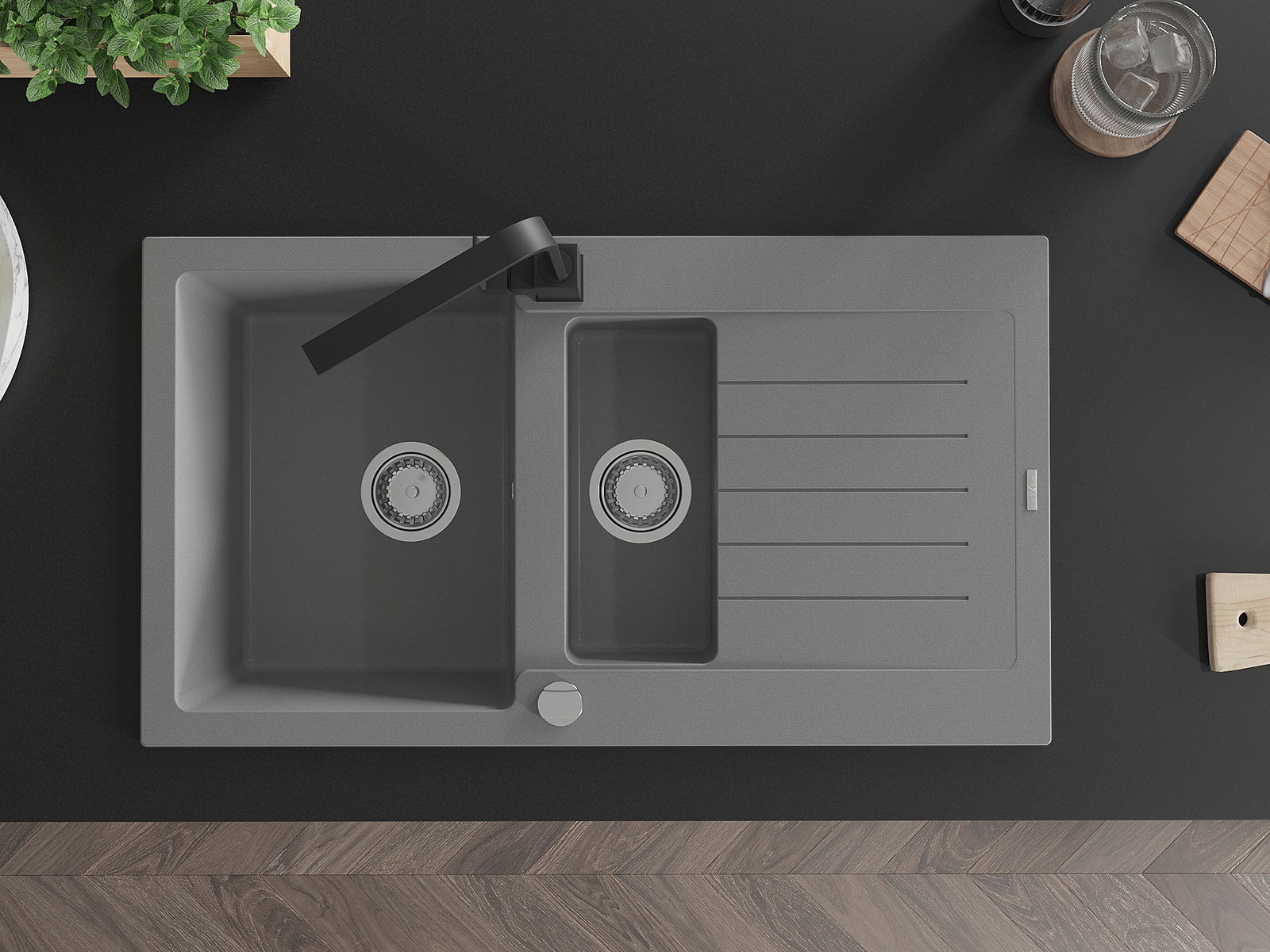 Мивката е направена от висококачествен гранит. Това е елегантно и най -вече практично допълнение към всяка кухня, независимо от нейния стил. Висококачествената и гранитна издръжливост осигуряват много години употреба.
