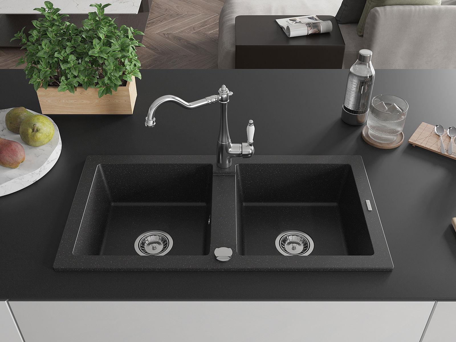 Мивката е направена от висококачествен гранит. Това е елегантно и най -вече практично допълнение към всяка кухня, независимо от нейния стил. Висококачествената и гранитна издръжливост осигуряват много години употреба.