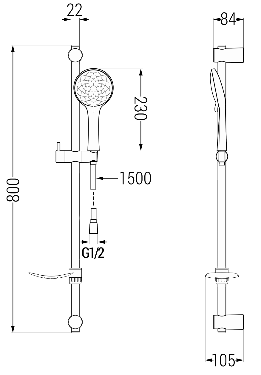 Стандартен воден поток, имитиращ естествен дъжд. Капките равномерно текат по тялото, обвивайки ги с приятно усещане за хидратация и ви позволяват да се потопите в релаксиращи и успокояващи усещания за опит по време на ежедневната баня.