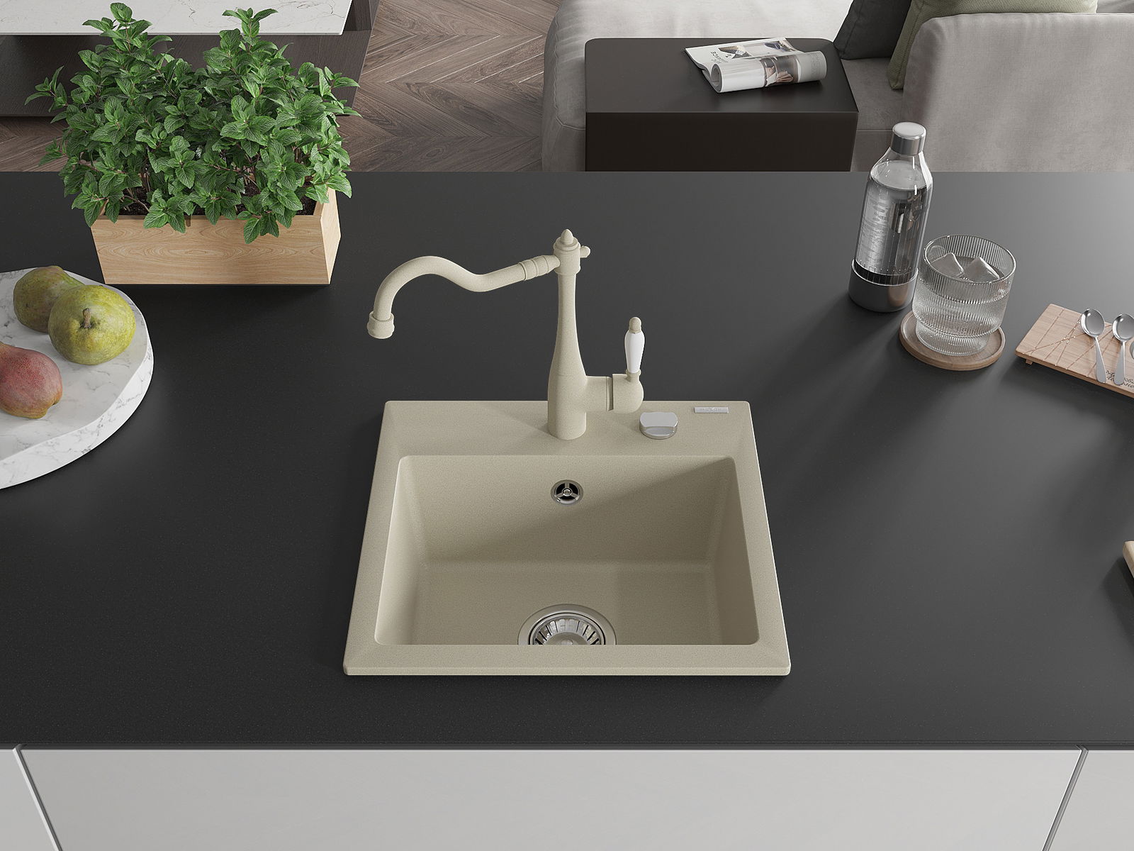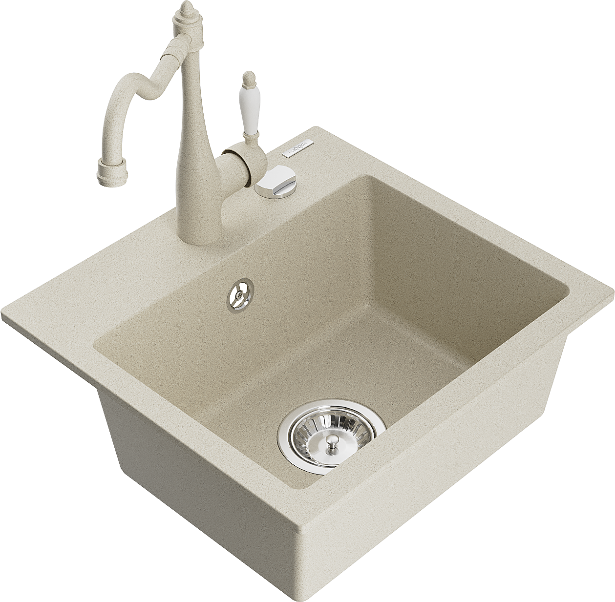 Mexen Milo гранитна мивка с 1 отделение с кухненски смесител Carla, бежов - 6505-69-670700-69